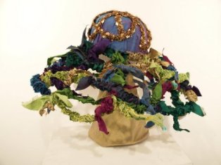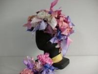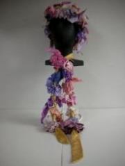 | ヒイロ | ┃これは、長いワイヤーにインドシルクの筒状にして、通して、それで、冠状態にしたんです。インドシルクは張りがあったり、光沢があったりして、こういう造形に合ってる。→写真1 写真2<地中海の花畑> |