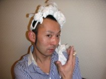 写真 ←これ、きっと似合わないだろうと思ってわざわざ用意してもらったのだが、しかし案外に違和感がなく、笑えない。