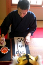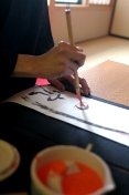 最初、多少の緊張がみられたものの、徐々に気持ちが入り、筆を持ち、紙に向かう『目』が変わっていくのが伝わってきました。(きっと殺陣をする時もこの目になるのだろうと思いました)