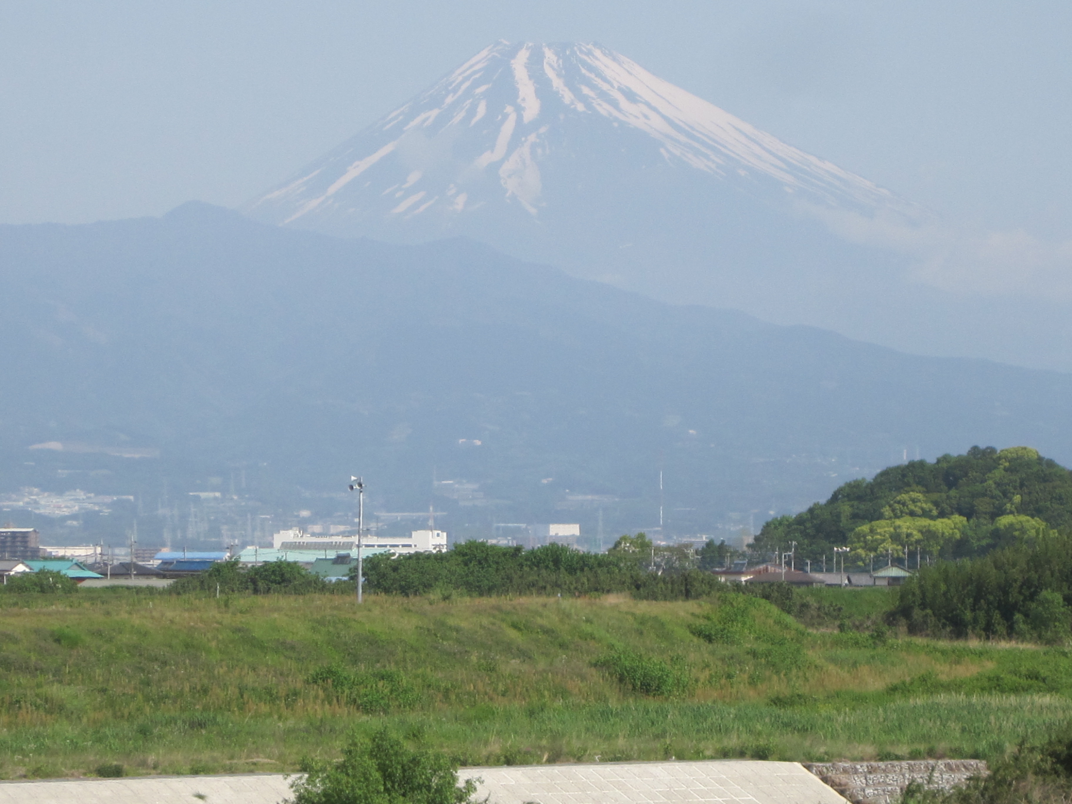 始発で電車に乗り、爆睡ぶっこいて、原木駅に着く。登山的な恰好をしてたのが僕一人でした。ここからアプローチする人は少ないのかな。てくてく登山口を探しながら、いきなりの富士山。のどかでいい天気。