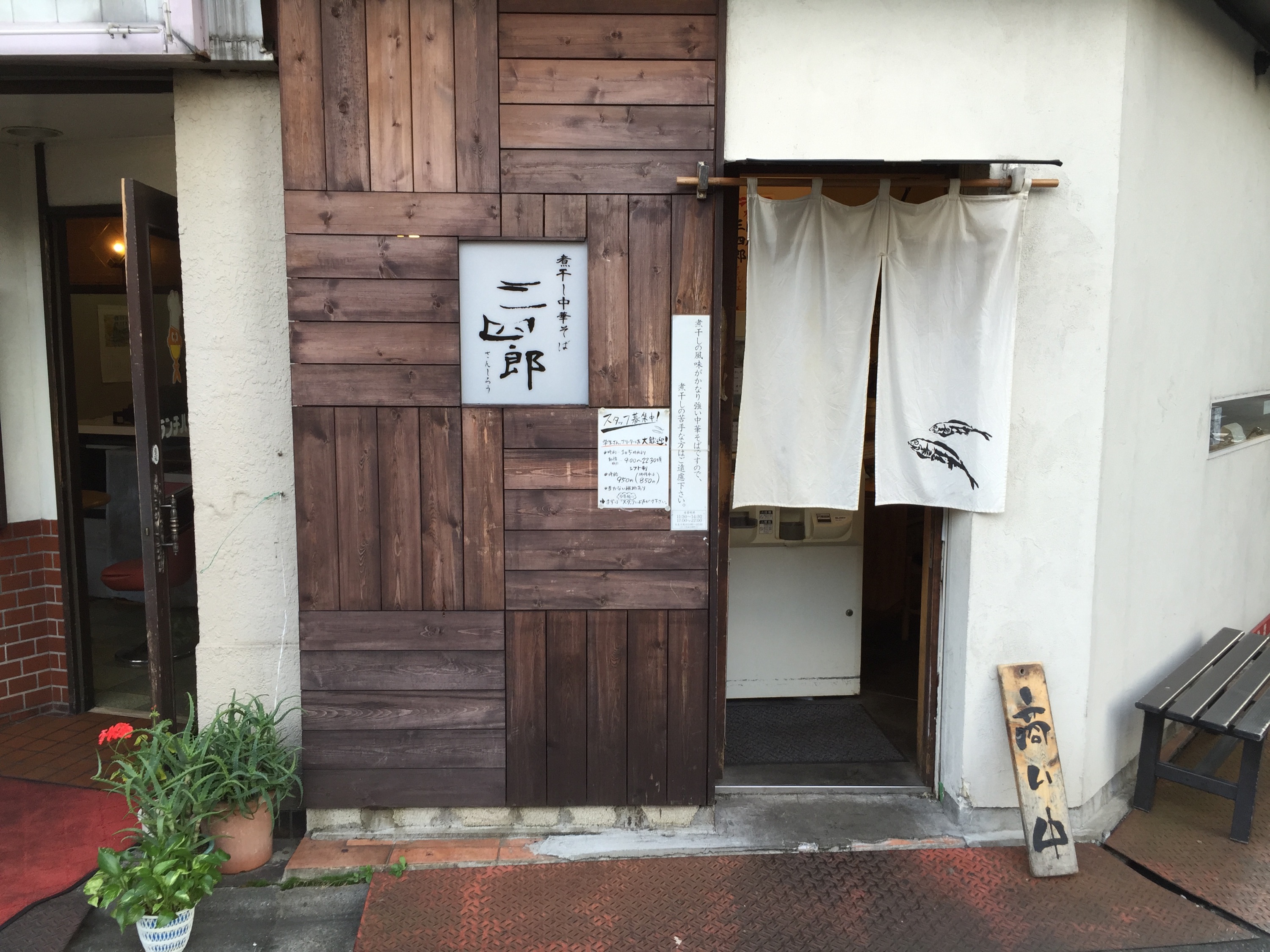 ヨンパチめし部。 3rdGIG 三四郎【江古田】@「語感でアイロニー」#1344 Posted on 2015/11/22 by kotaro / 0件のコメント そんなわけで。孤独なヨンパチめし部。今回は、この間書いたランチハウスさんの真横にある、煮干し中華そば三四郎さんに食べに行きました。平日の昼間は結構並んでおり。前から気になってはいたのですが。 ええ。にぼにぼです。 煮干し中華そば並 690円。じゃ~ん。 三つ葉のアクセントに玉ねぎに炙った香ばしいチャーシュー。麺はストレート中細タイプ。 うんめ~のな。うんめ~のな。 ご馳走様でした。 kotaro kotaro の投稿をすべて表示