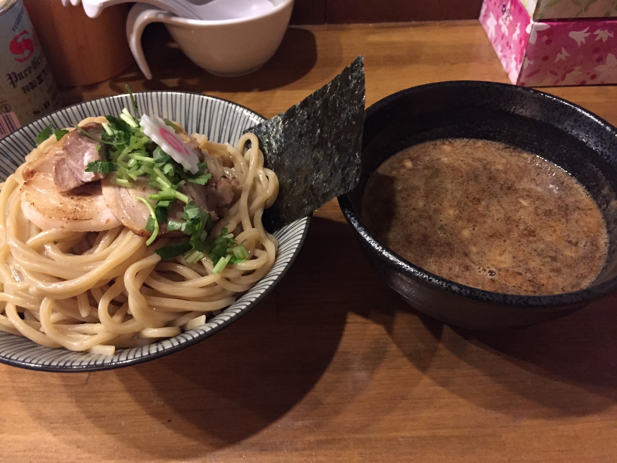 つけ汁は魚介系。麺はもちもちの太麺。