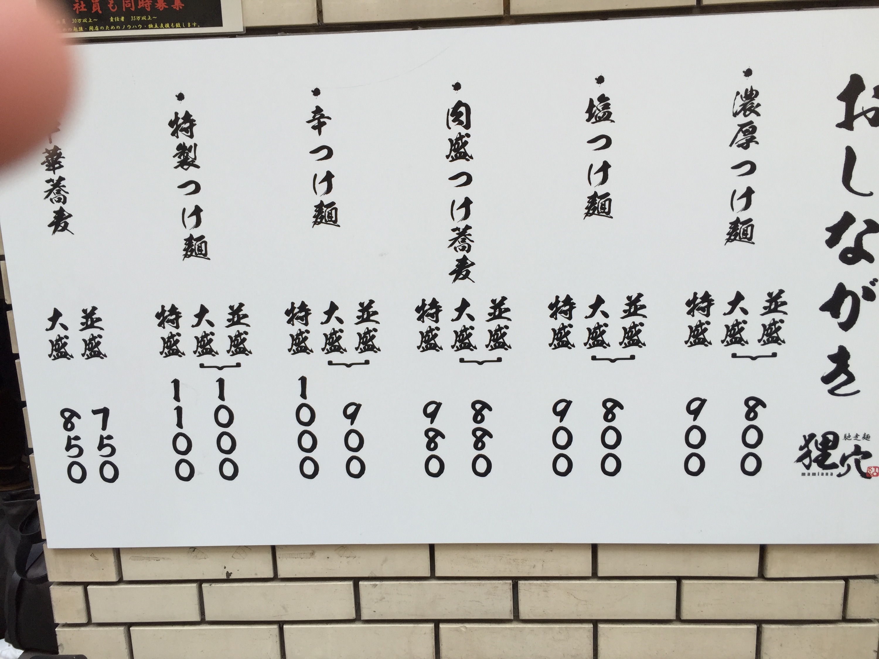 これだ。たぶんこれだ。肉盛つけ蕎麦。真ん中のお品書き。