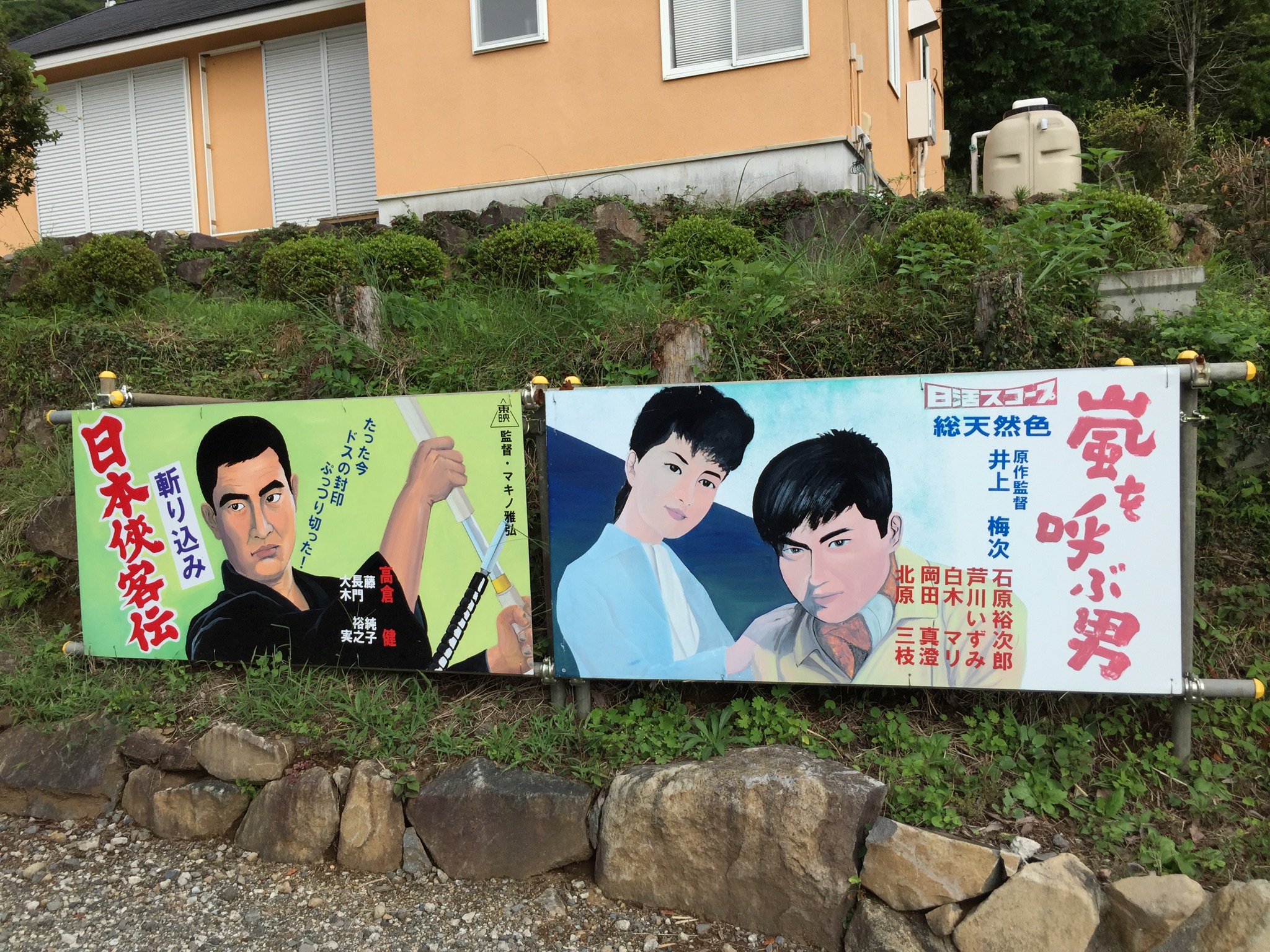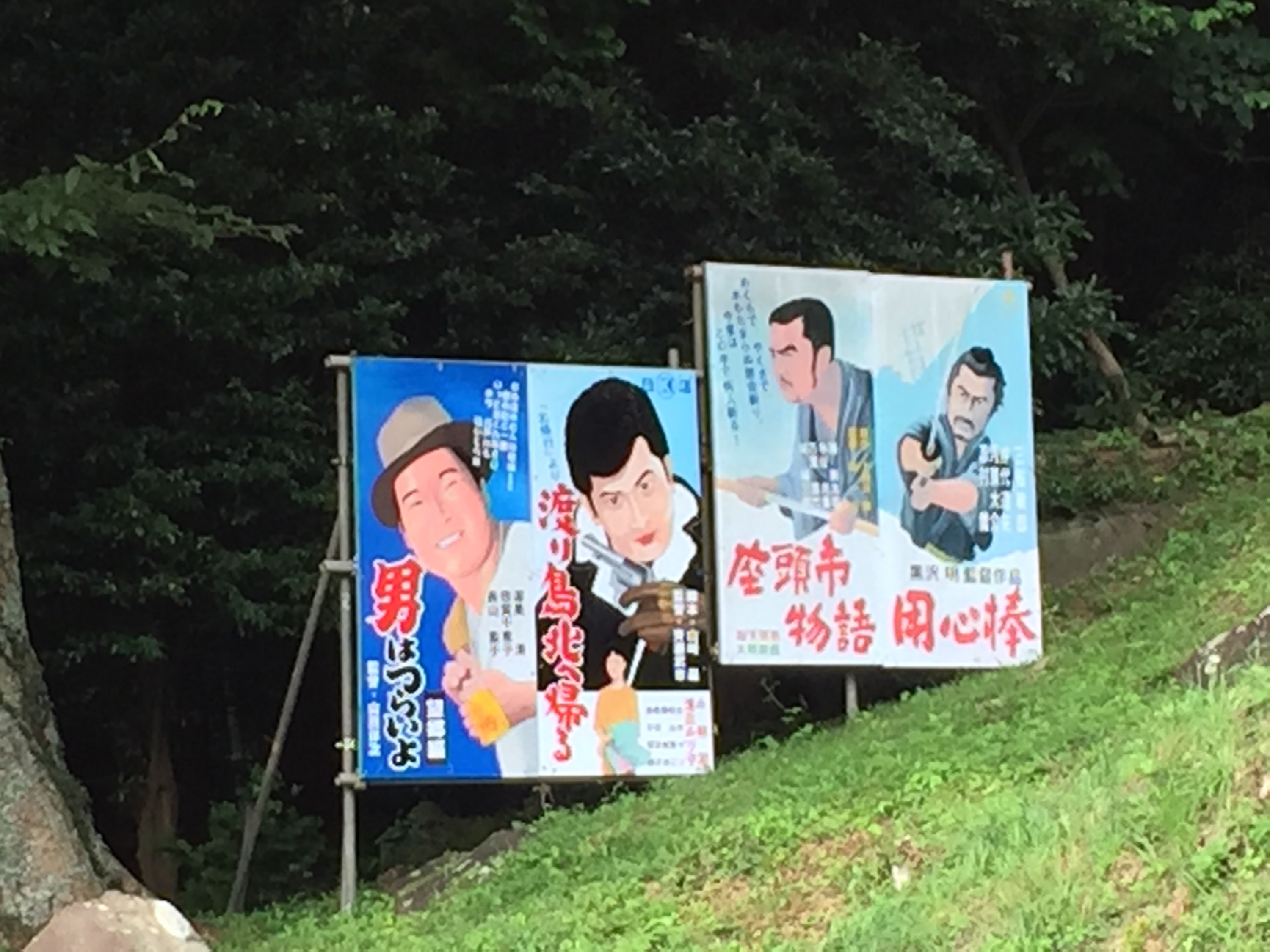 なんて、思って歩いてると。昭和な映画スターの看板を発見。渥美清。小林旭。勝新太郎。三船敏郎。ぐおお。錚々たる顔ぶれ。