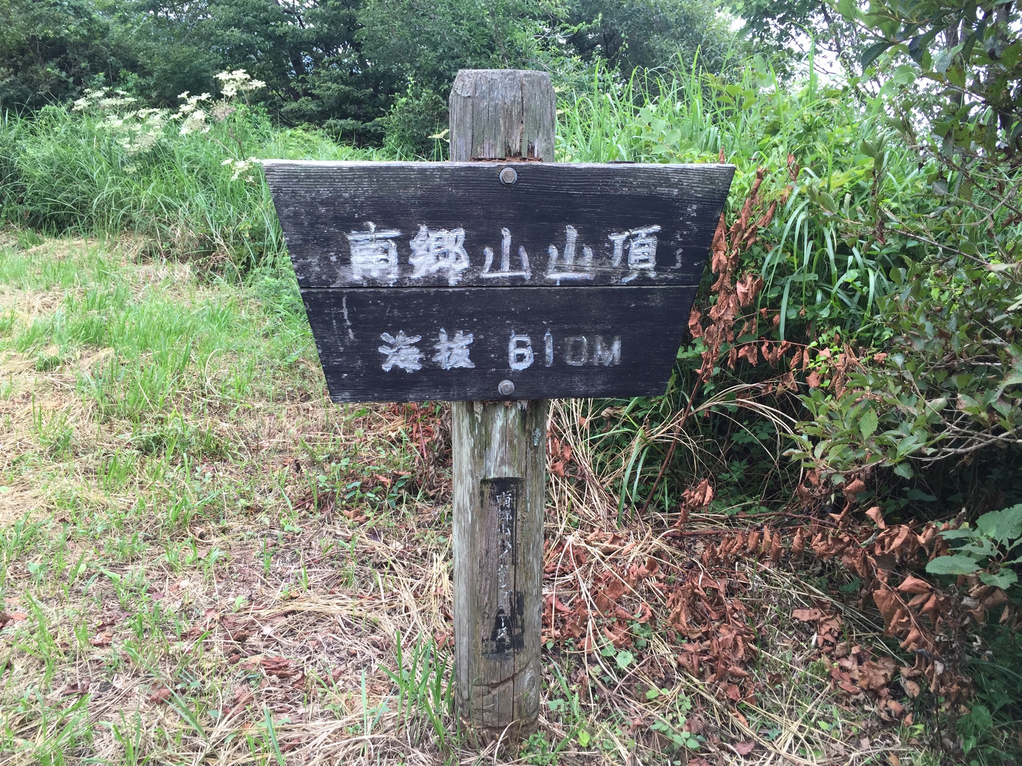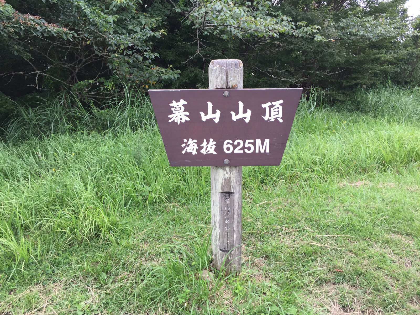 頂上は、草むらに覆われ景色が一ミリも見えません。てか、ここへ来るまで登山客誰ともすれ違わず。貸し切り状態(笑)