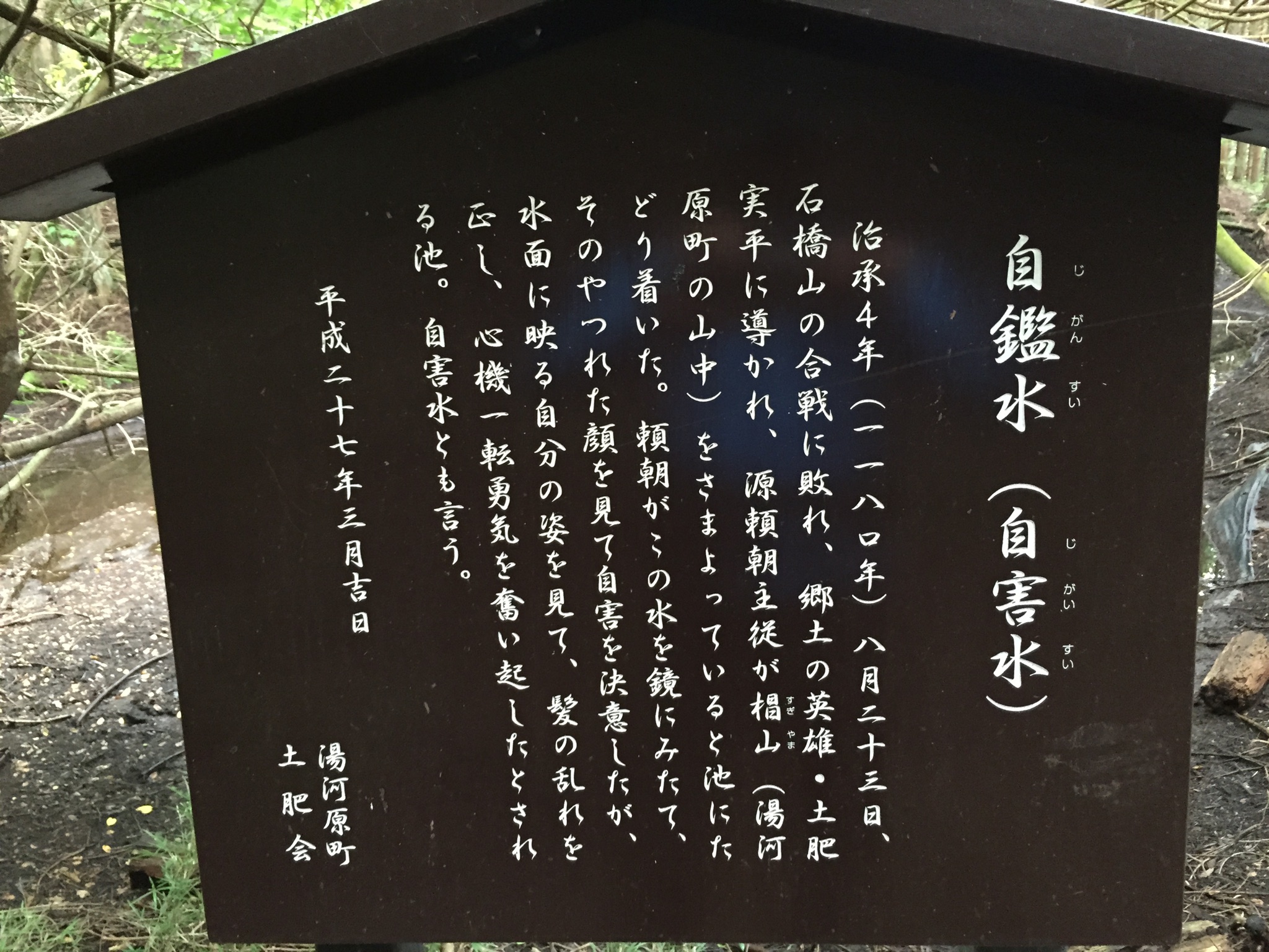 年中枯れることなく清水を湛えたこの窪地は、昔から自鑑水と呼ばれている。