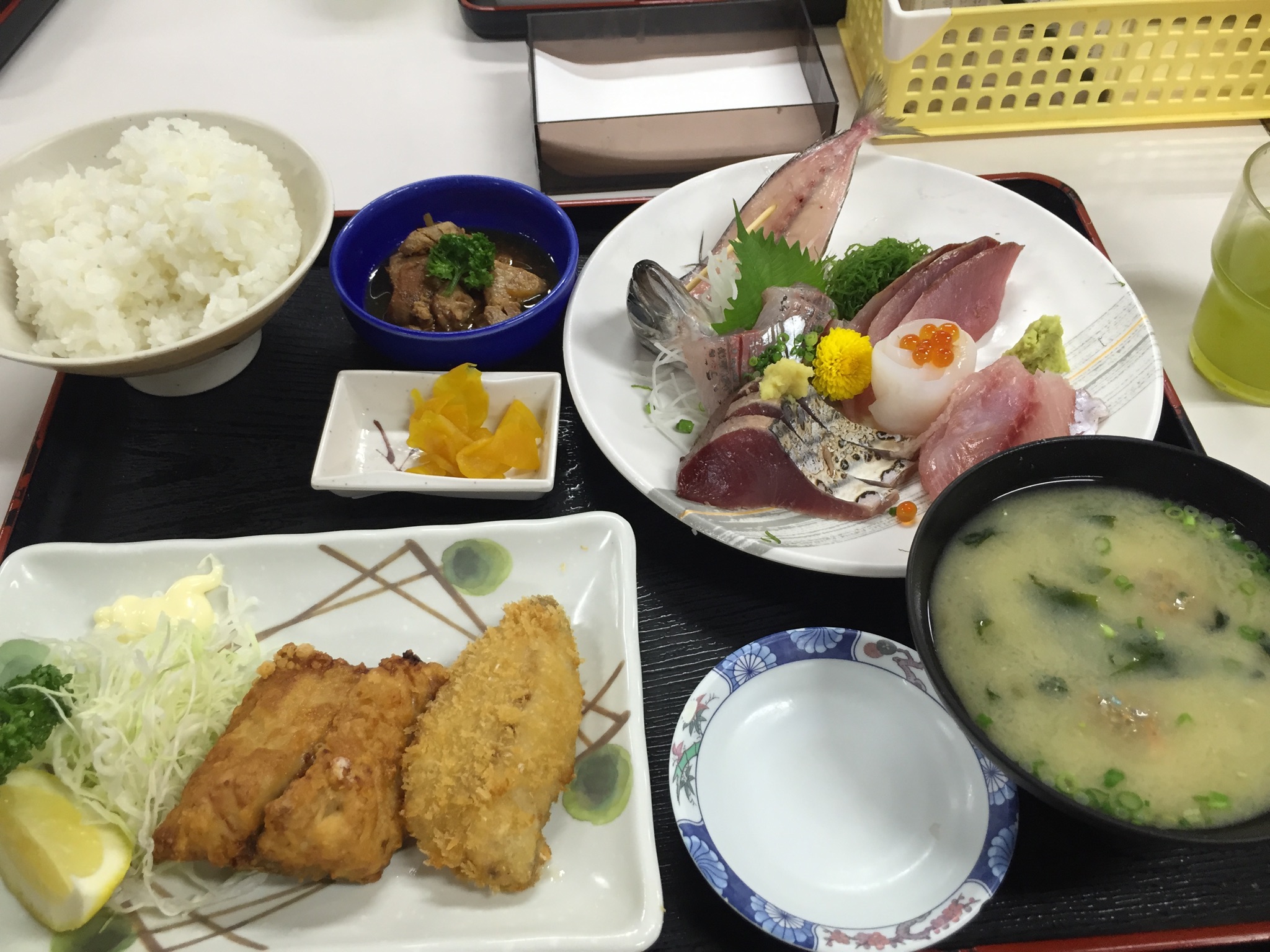 ヨンパチめし部。 12thGIG 魚市場食堂【早川】@「語感でアイロニー」#1443 Posted on 2016/08/16 by kotaro / 0件のコメント 旅二日目は、早川駅近くにある小田原漁港にある、魚市場食堂へ。いやね。完全な市場内にあるのな。不味い訳がない。 行列もやむを得ず。並ぶ。頼んだのが、限定の小田原定食。1560円。 なに、もう。煮つけも旨いし。フライも旨い。勿論、刺身もプリップり。 嗚呼。幸せなり。 てか、住みたい。この辺り。食べてる物の質のポテンシャルが違いすぎるよお。 kotaro kotaro の投稿をすべて表示