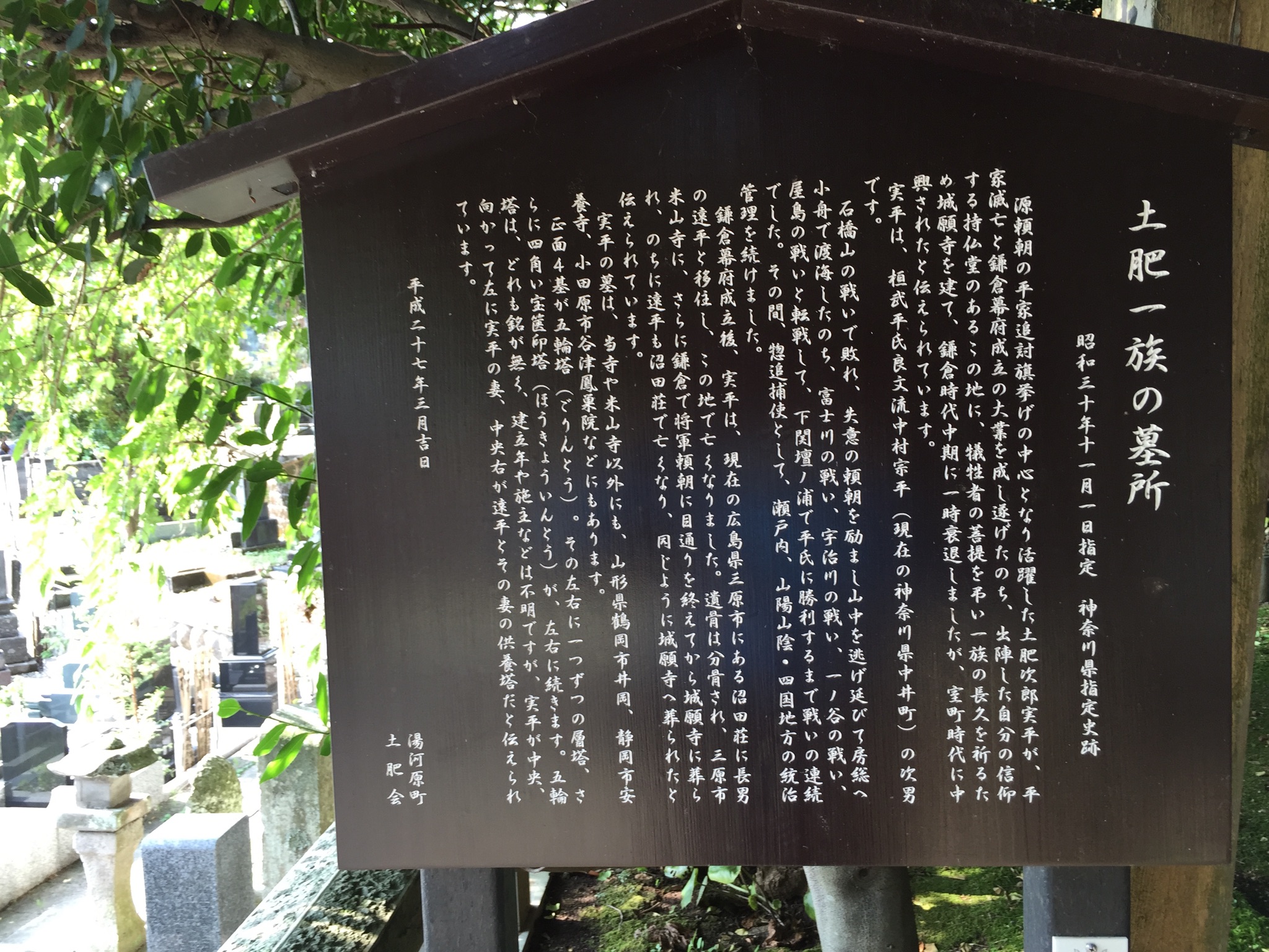 土肥実平は源頼朝の挙兵に中村一族(土肥氏の祖)を率いて参加し、数々の戦功を挙げる。石橋山合戦でも終始頼朝につき従い、海路安房に渡った。なお、石橋山合戦の地を領していたので地形に明るく頼りになる人物であった。