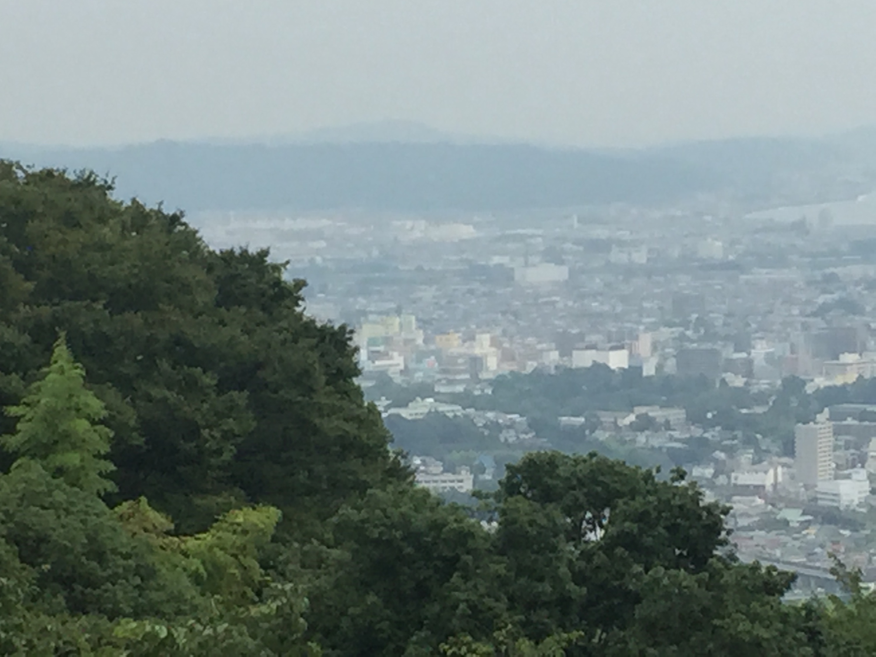 本丸物見台より、眼下の小田原城。写真だと解りづらいなあ。見えましたね、小田原城。その距離3キロの位置だそうで。