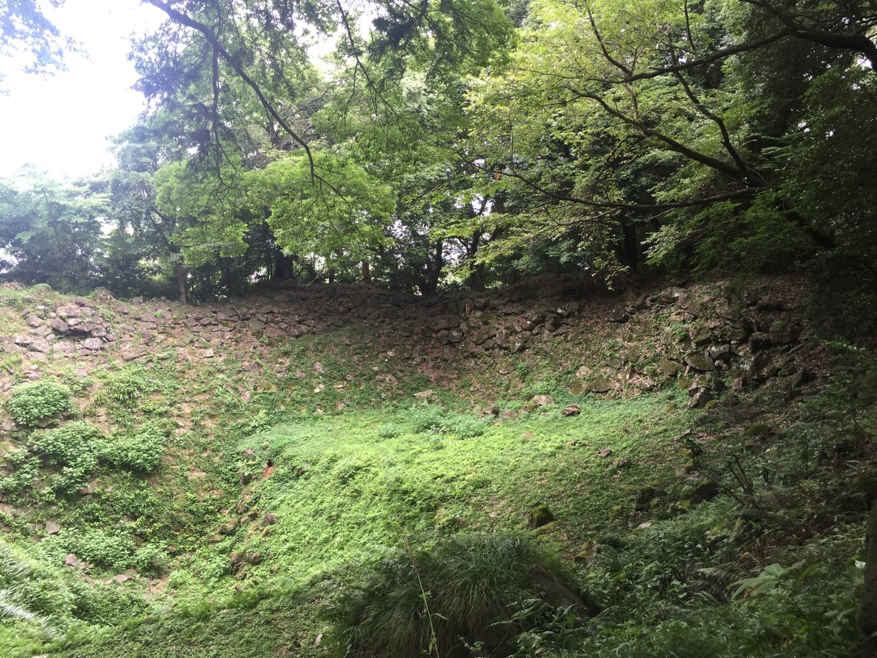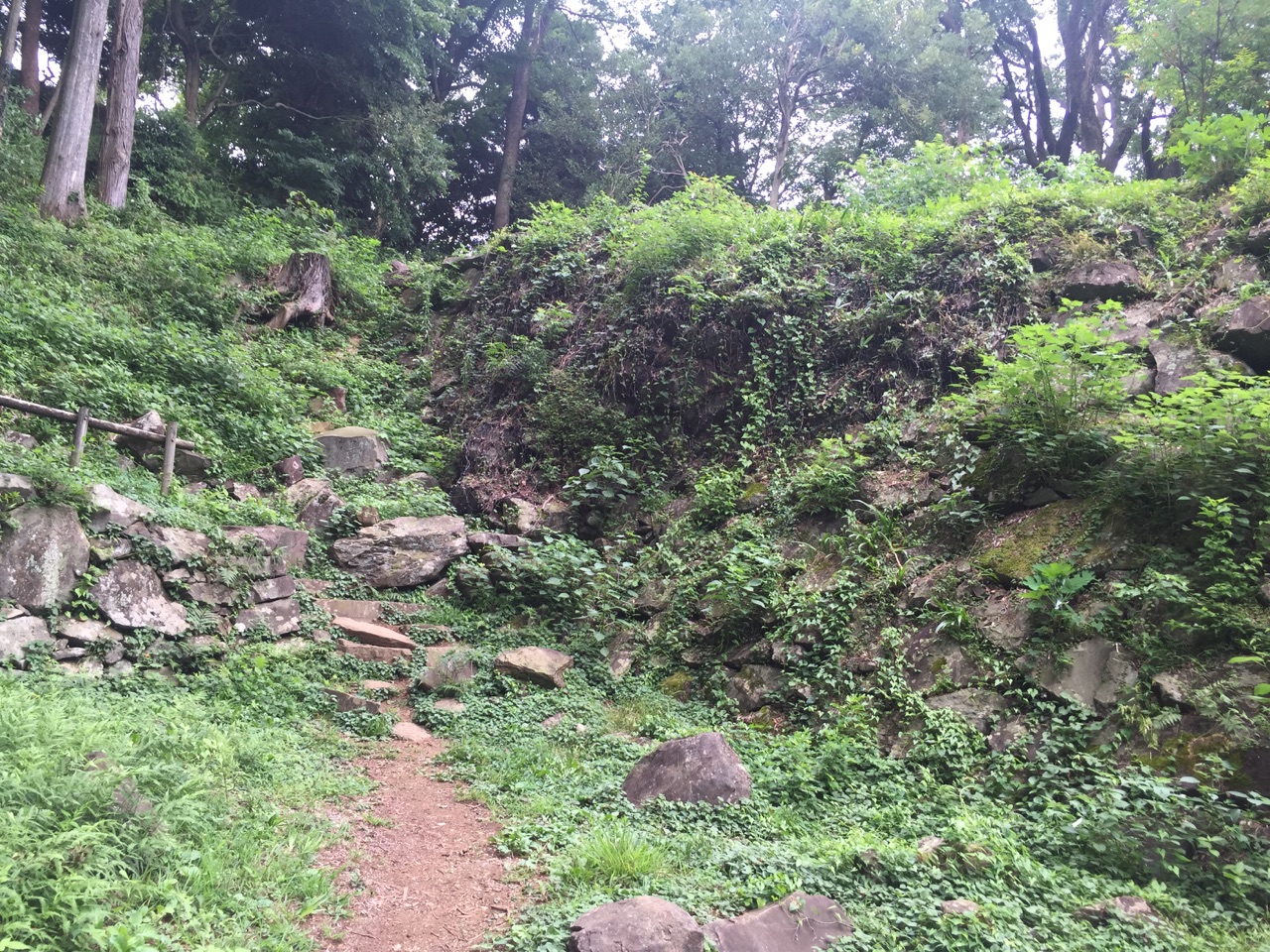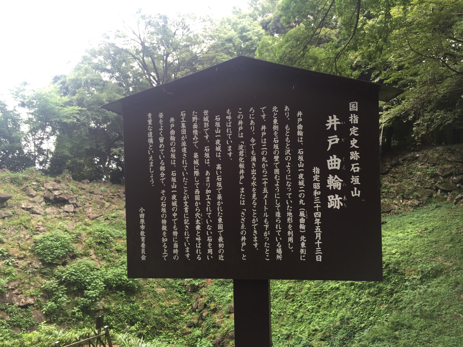 この城を見ると、この規模の城が数ヶ月で出来上る当時の技術力に驚くと同時に、当時の秀吉の力を実感する。江戸時代の数度の地震や関東大震災で石垣の多くは崩れてはいるが、井戸曲輪で谷状に曲輪全体が掘り込まれその四方を石垣が囲み、ここは城内で最も石垣が残る場所で穴太衆の野面積の確かさを実感できる異次元的なもの。この曲輪を見るだけでもこの城に行く価値はありますな。いやあ。しかし、なんで自然の石を合わせて崩れないんだろう。