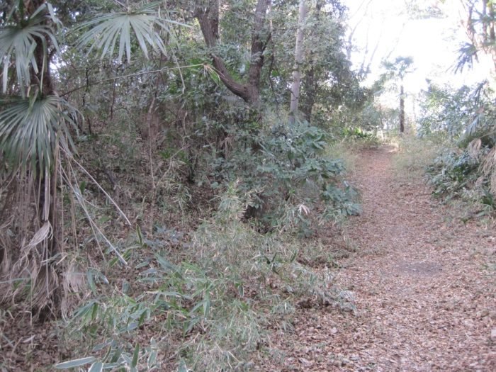 裏に回ると、そこは土塁であった。細々と残ってる。ここだけは残しておいて欲しいですね。