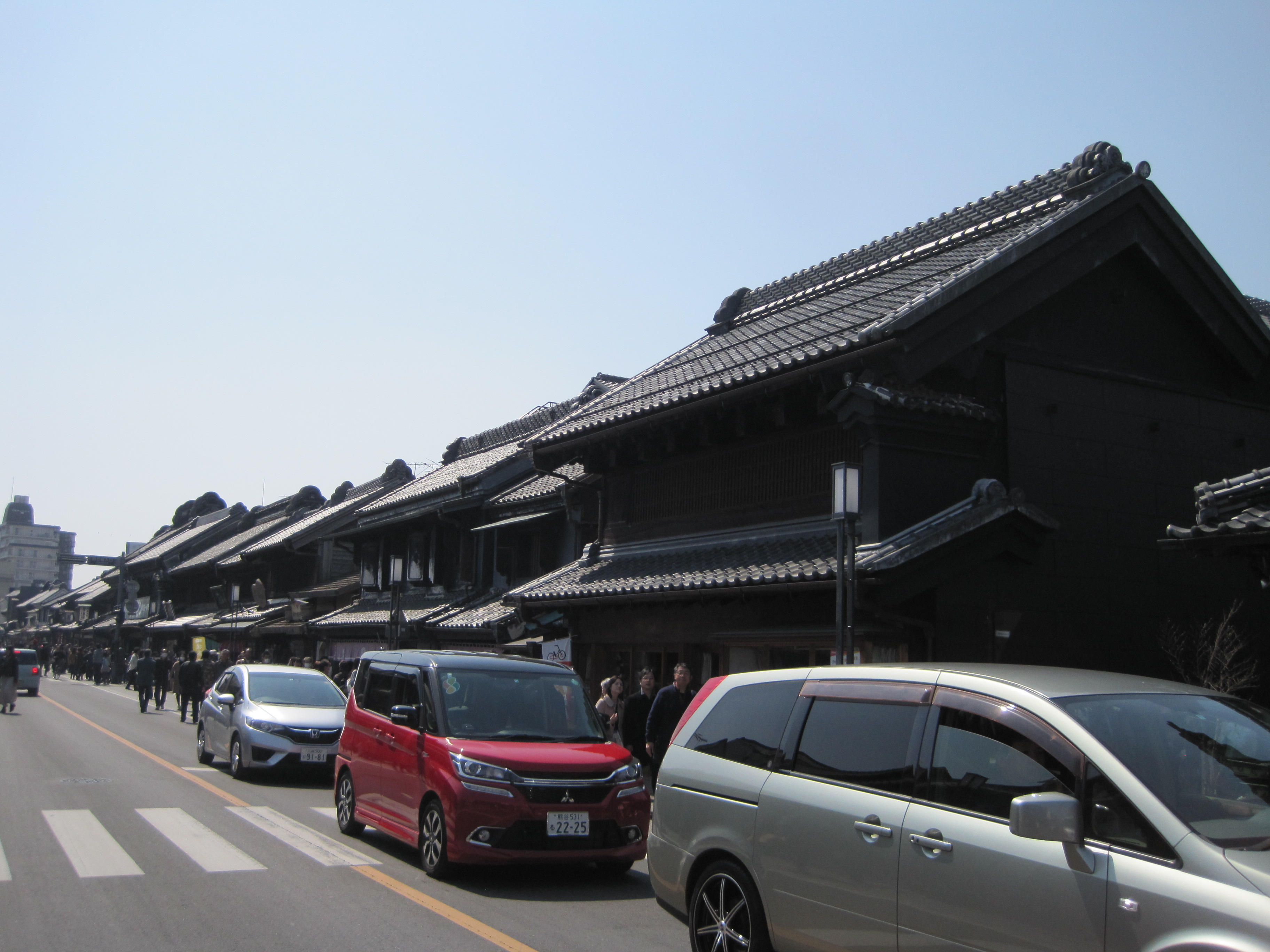 蔵造りの家々。タイムスリップしたかのよう・・・と、言いたいところだが。車!渋滞!趣がああああ!モロ、現代!