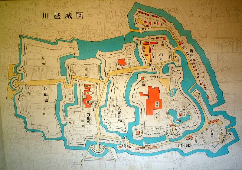 寛永16年(1639)、川越城主となった松平信綱は川越城の拡張整備を行う。その結果、本丸・二ノ丸・三ノ丸・追手曲輪・新曲輪などの各曲輪、3つの櫓(幕末の絵図にはもう一つ隅櫓城の建物が描かれている)、13の門からなる、総面積約9万9千坪(約32万6千㎡)余の規模をもつ巨大な城郭となった。