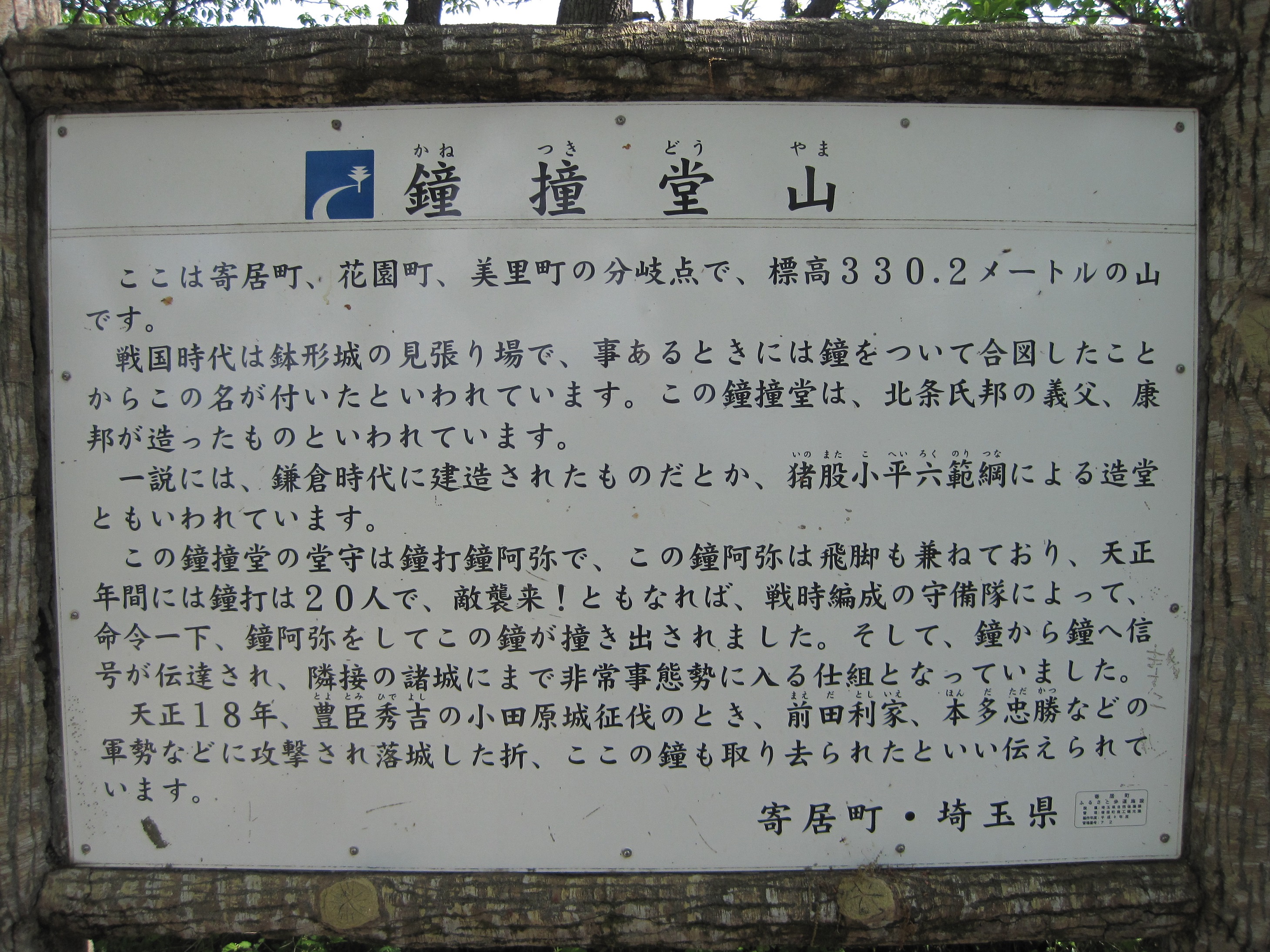 後で行く鉢形城の防衛上鳴らす鐘があった場所だったんだね。繋がるねえ。