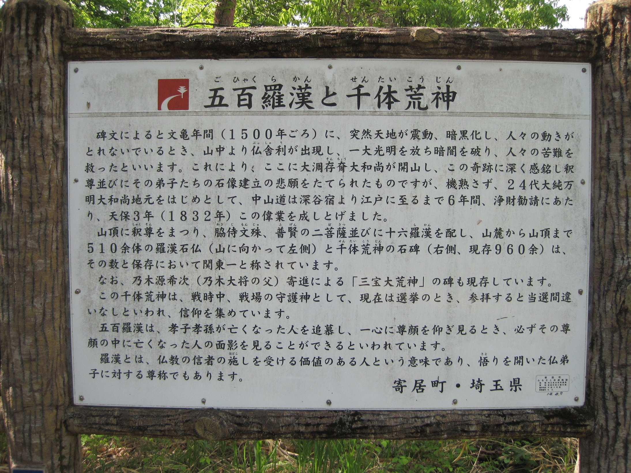 寄居駅 07:40 大正池 08:00 鐘撞堂山 08:25(休憩10分) 羅漢山 08:45(休憩20分) 少林寺 09:15 鉢形城 10:15