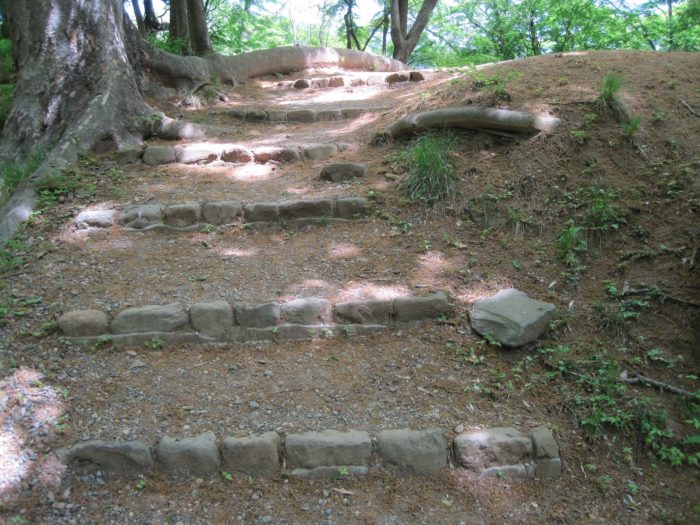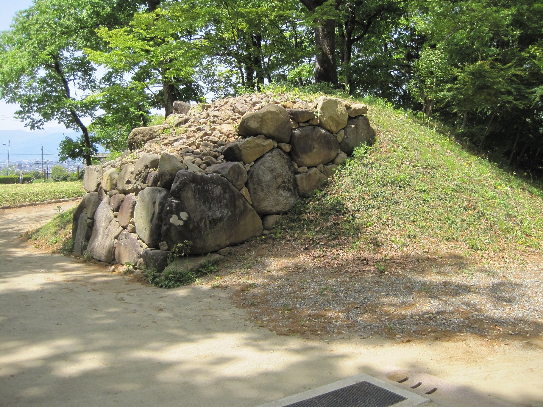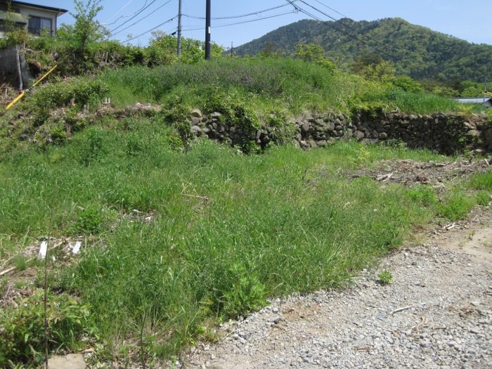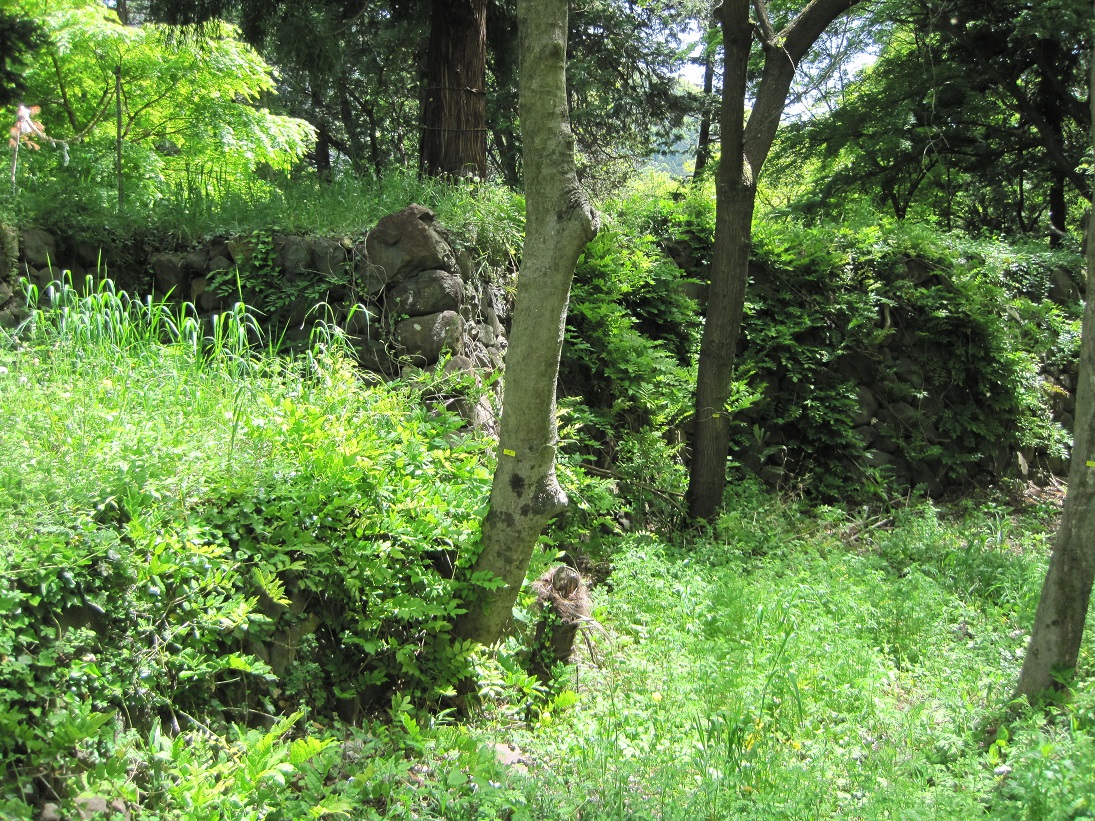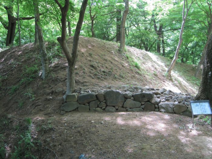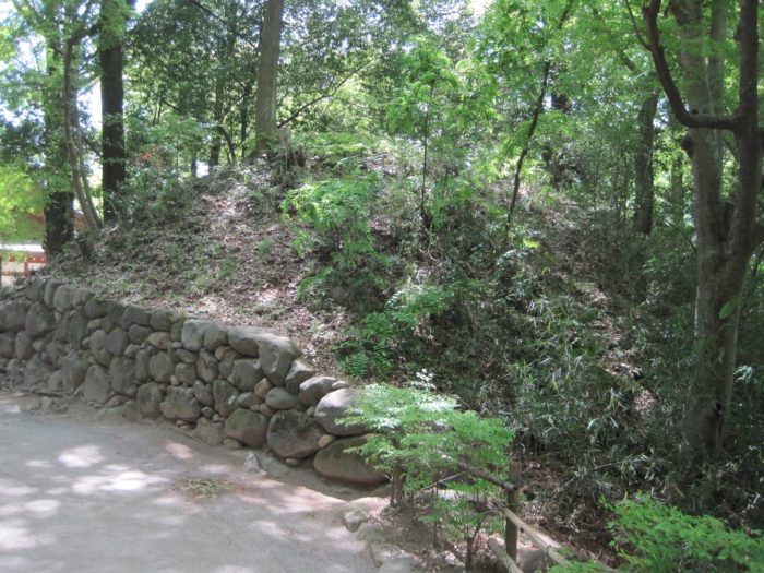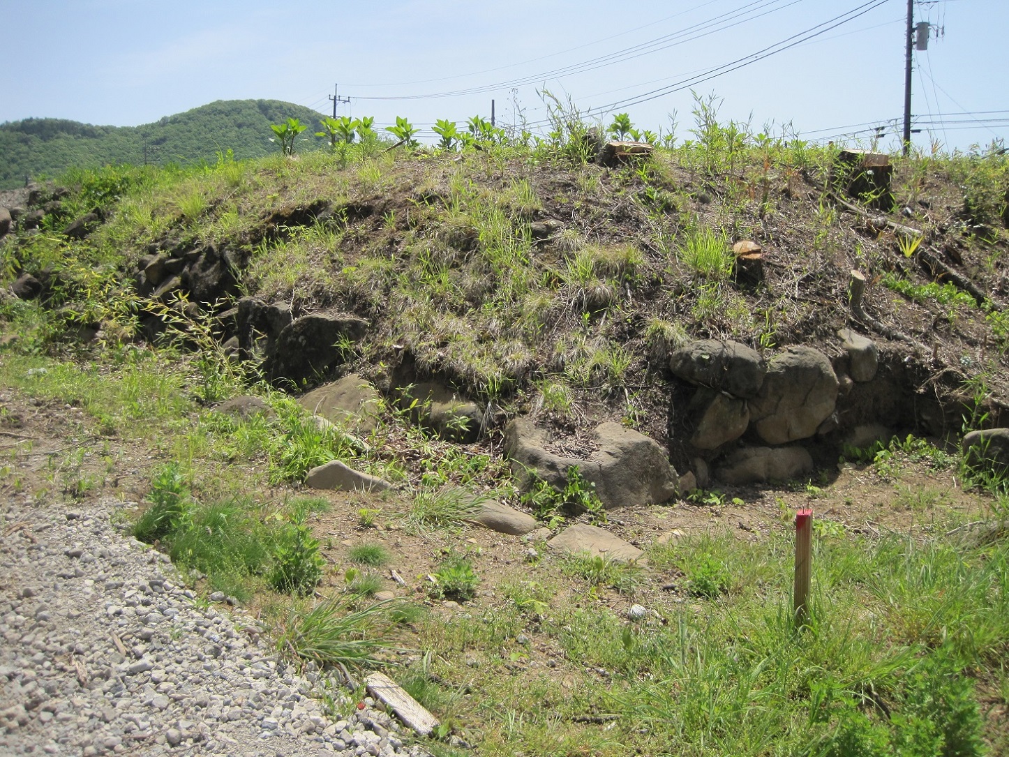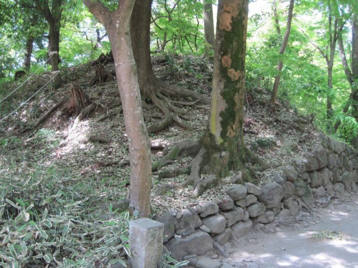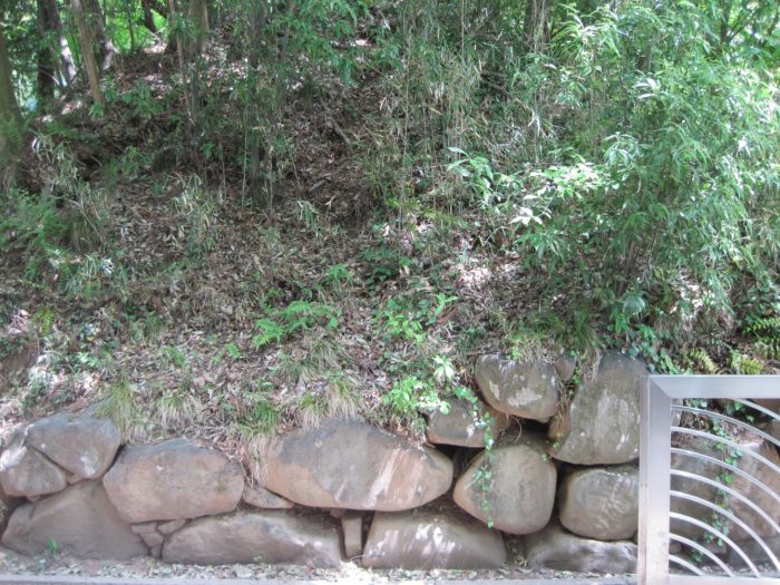 裏から見た石垣と土塁。