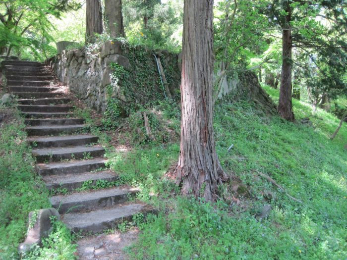 本曲輪の西側にある石垣。この辺りに天守台跡があるはずなのだが、立ち入り禁止になっている。復元整備されるのだろうか。
