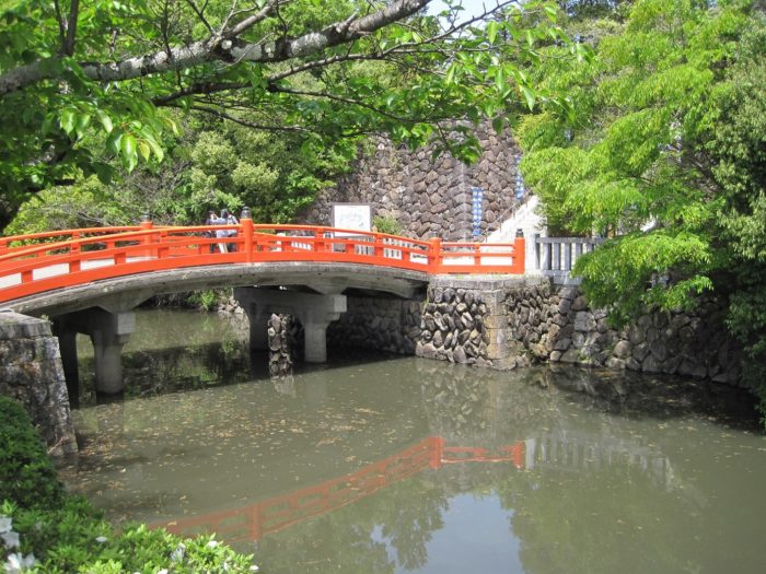 中曲輪と東曲輪に掛かる赤い橋。