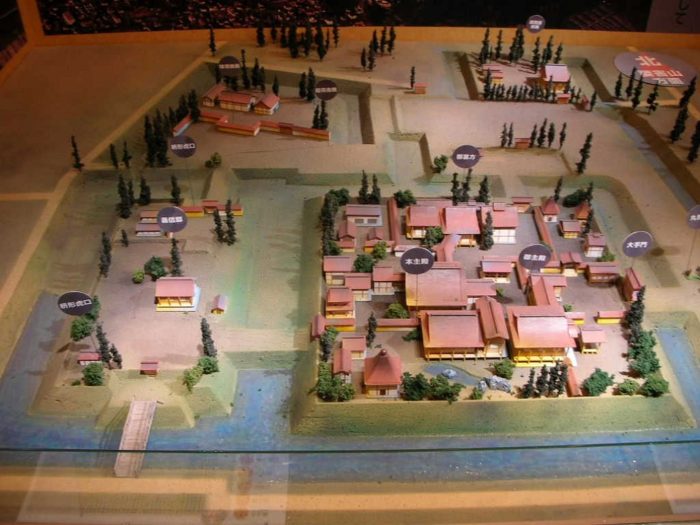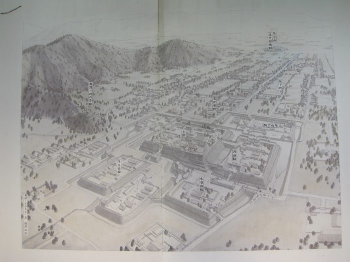 縄張図。復元模型等。
