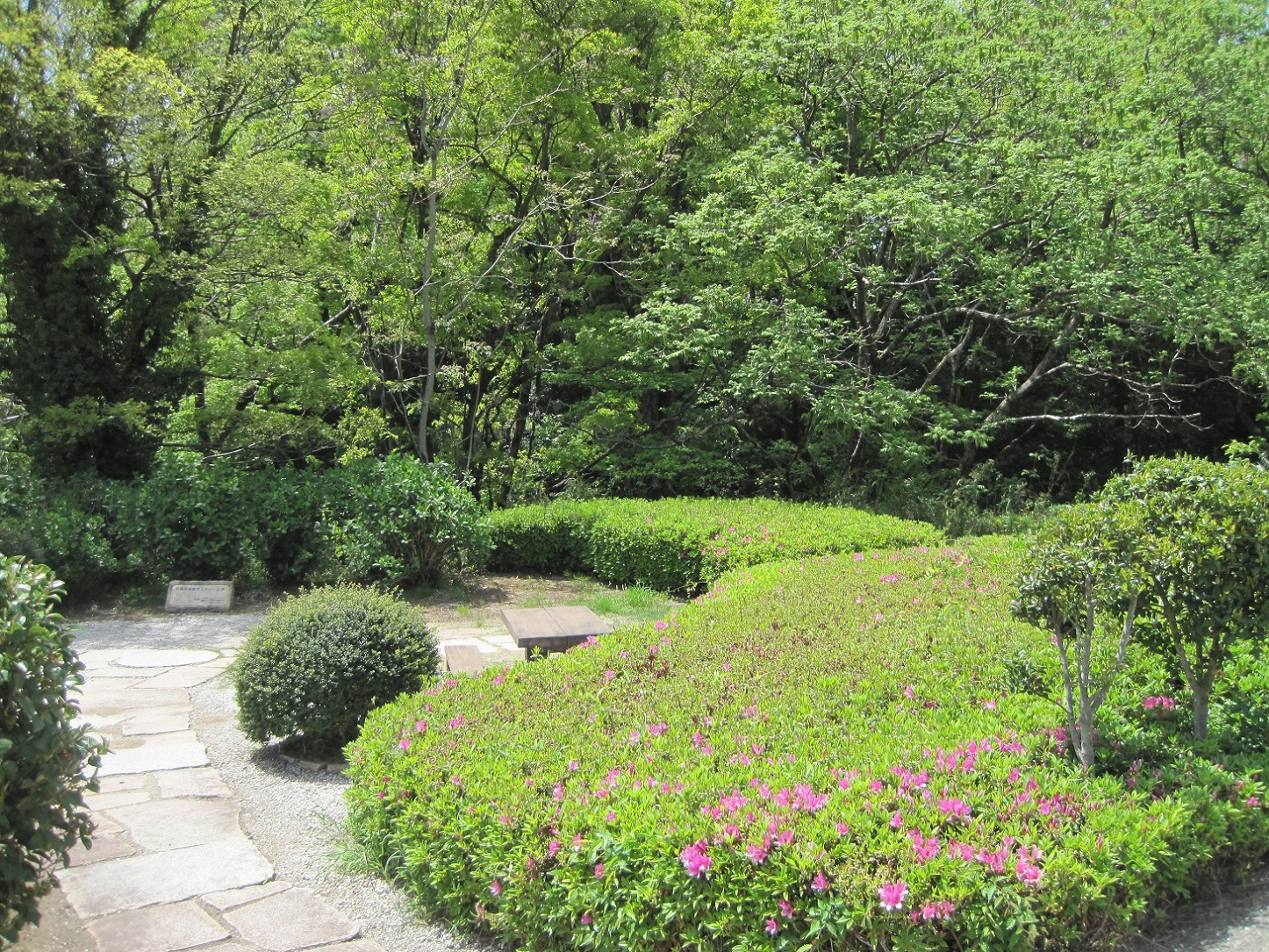 新緑とのどかな景色と整備された歴史を堪能しつつ、大手門に戻り、本曲輪に戻る。能舞台。