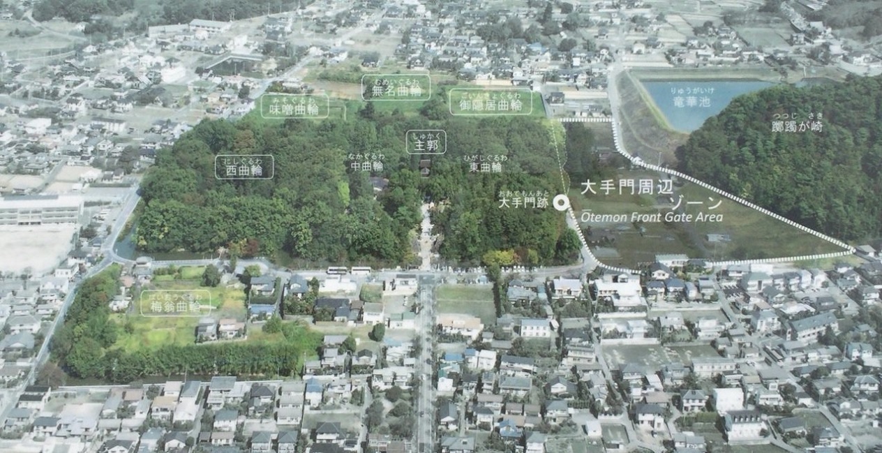 西曲輪虎口の南出口。最初の方に写したアヒルのいる橋と水堀へ繋がる跡。
