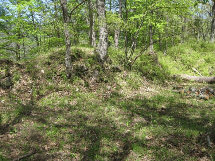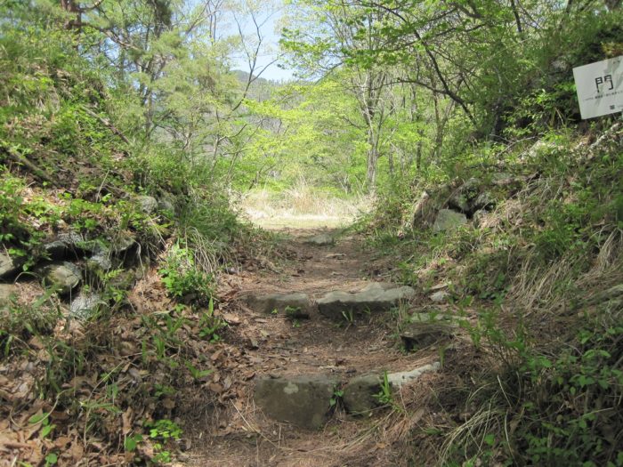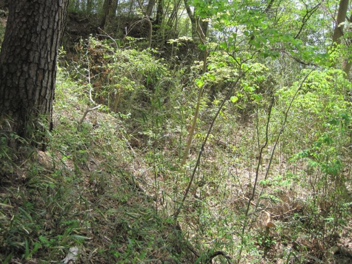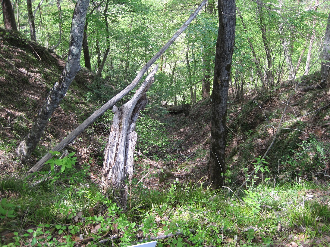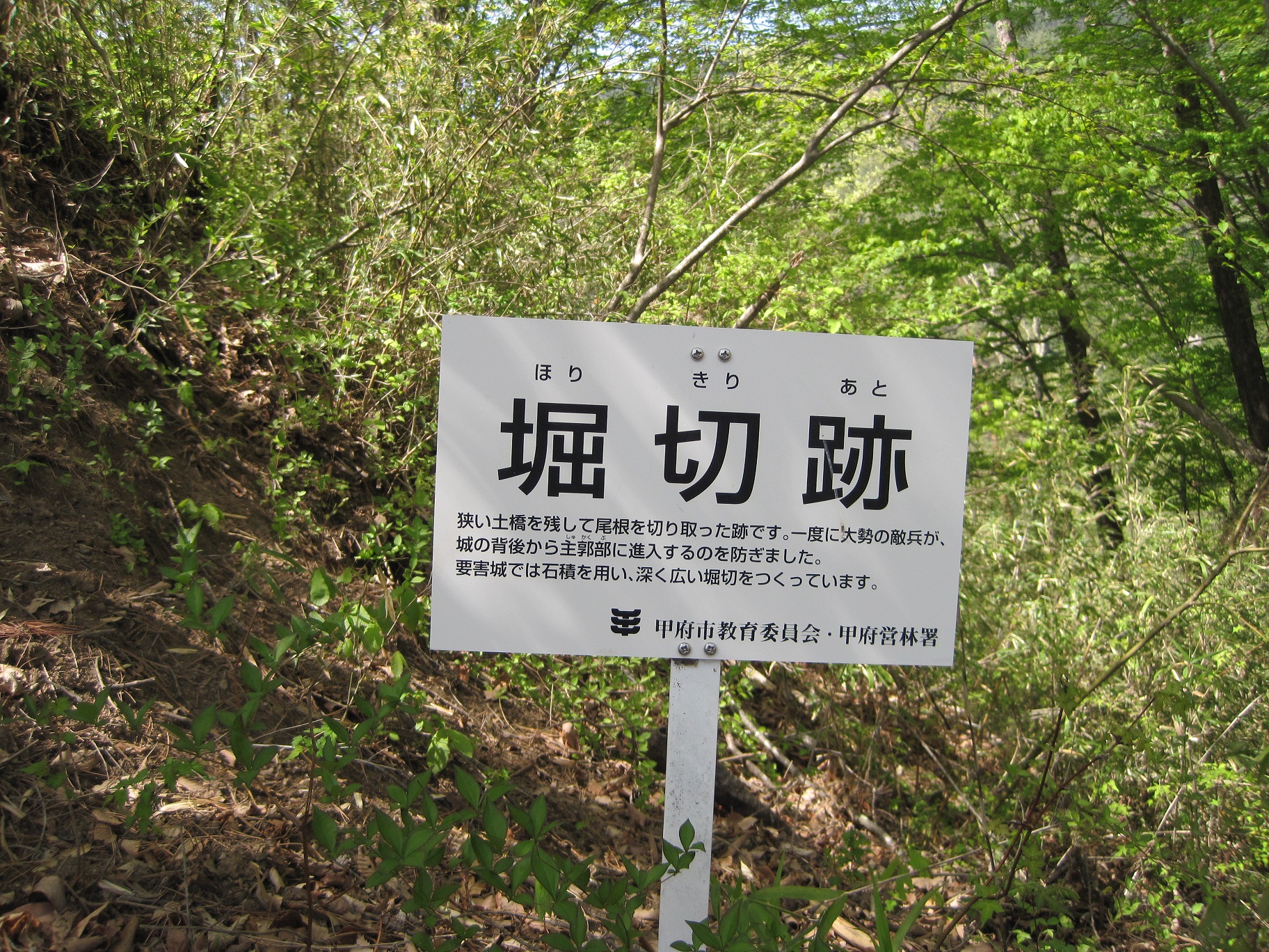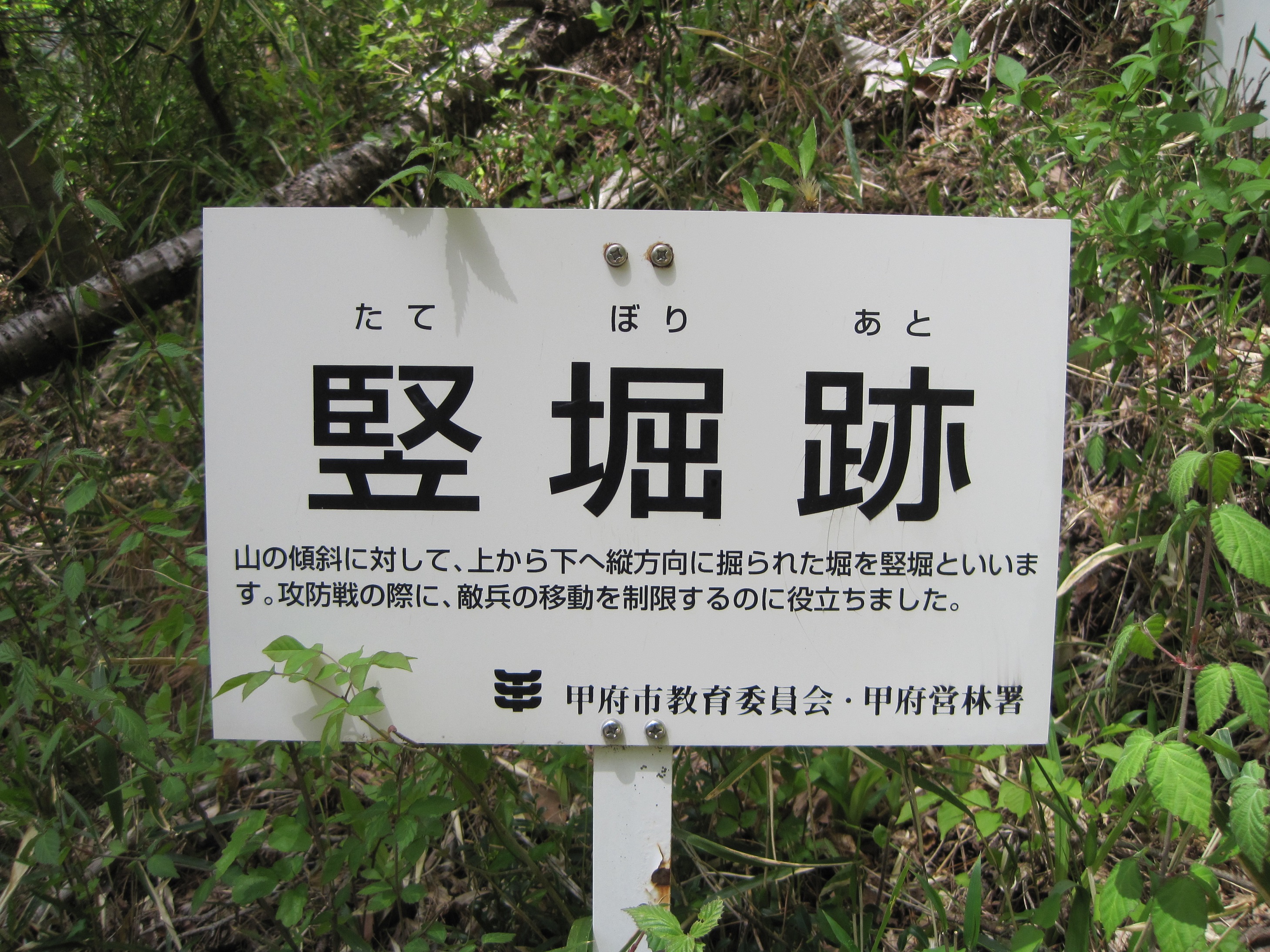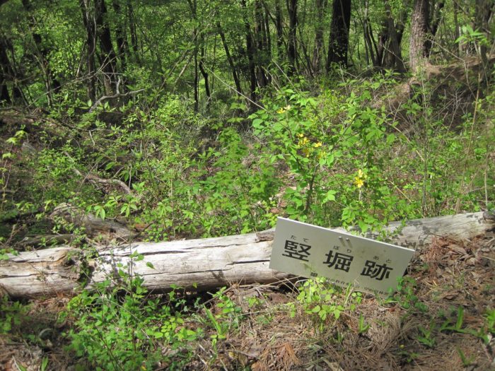 登山がてら登ってくと説明板が。竪堀跡。