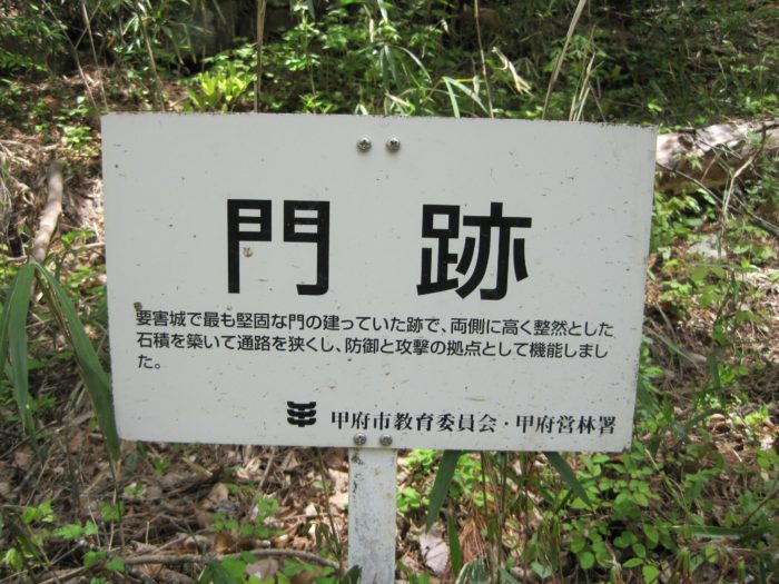 歴史の項にも書いたが、武田氏館の詰の要害として築城された。歩いても20分くらいで要害山の入り口まで着きます。良く出来てるよなあ。配置が。館とセットで造られてる。戦国時代って感じがしてゾクゾクします。