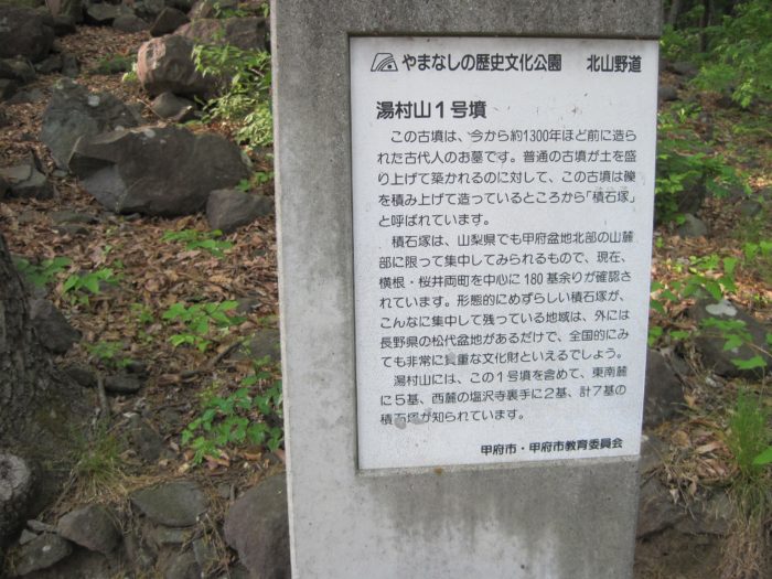 本日5つ目の攻城。もう無理っす。俺、何キロ歩いたんだろうか。躑躅ヶ崎(武田氏)館の西の防御地でもある湯村山城へ。夕暮れも差し迫り、でもどこか散歩気分な登山道。地元の人たちと挨拶しながらてくてく。熊城の道なき道と違って歩きやすいし、遭難のプレッシャーも感じない(笑)途中に古墳跡。