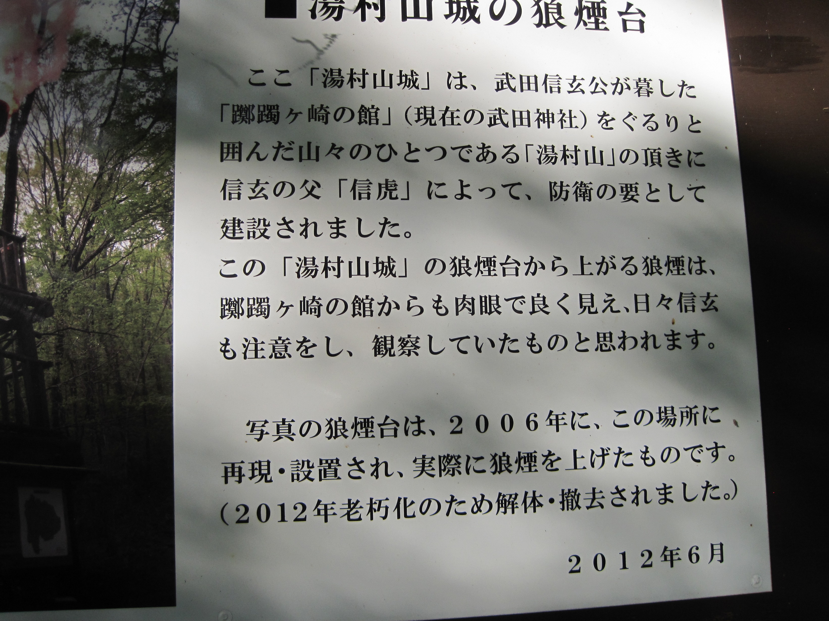 模擬櫓は2012年に撤去されたみたい。残念。説明板を載せておきます。