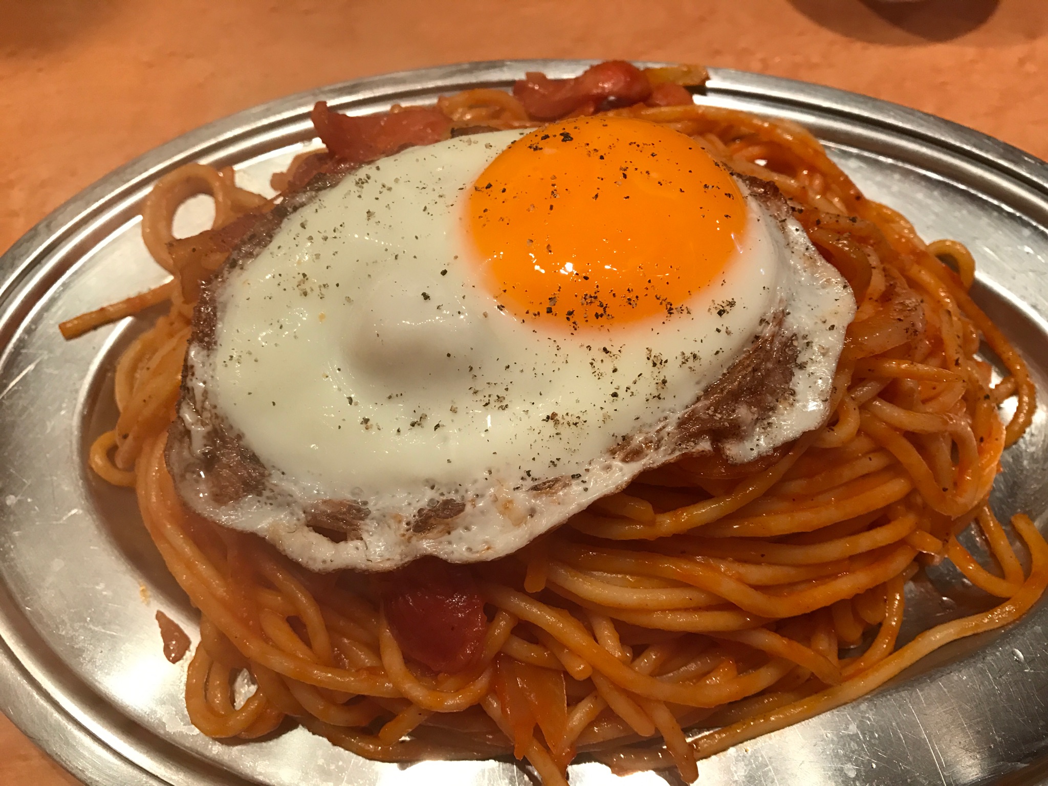 ナポリタン600グラム。目玉焼き乗せ。740円。余裕で行けた。