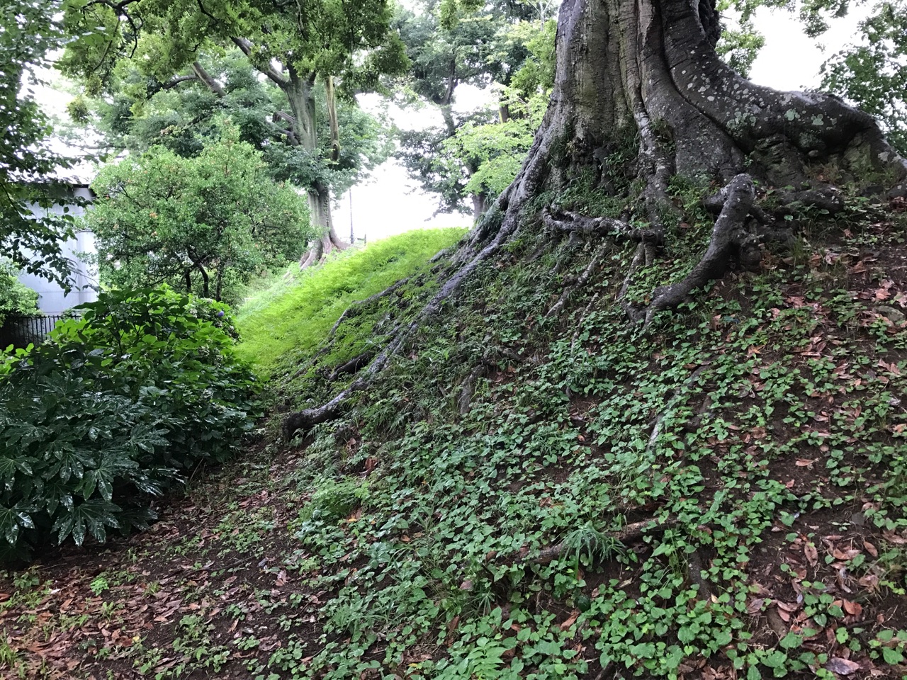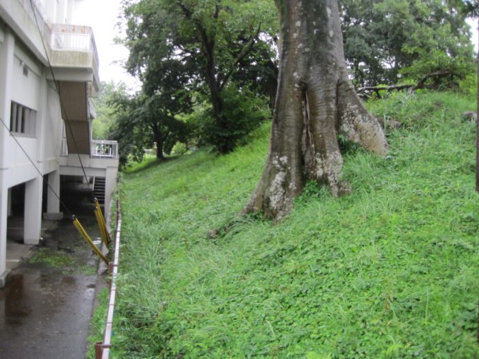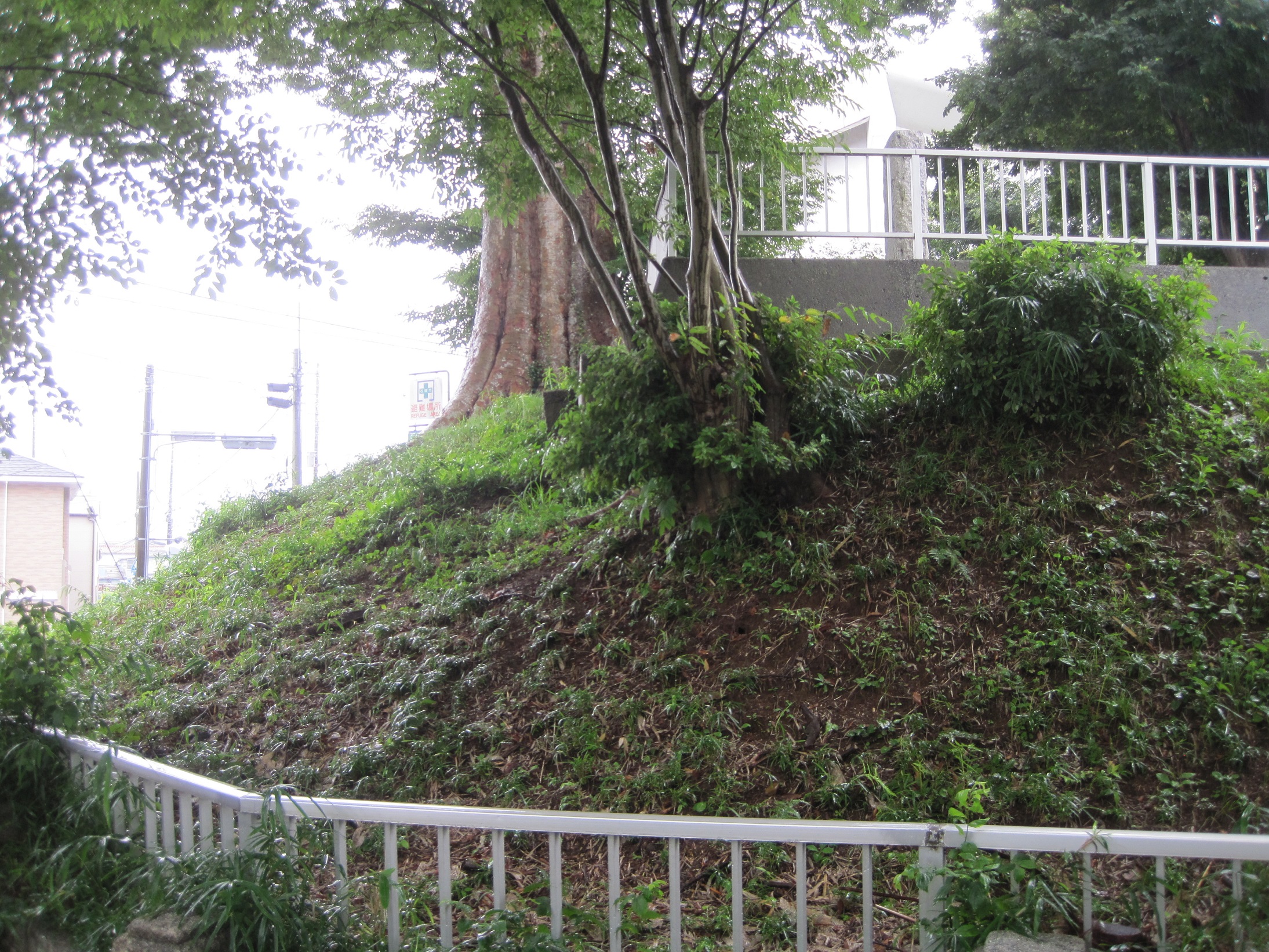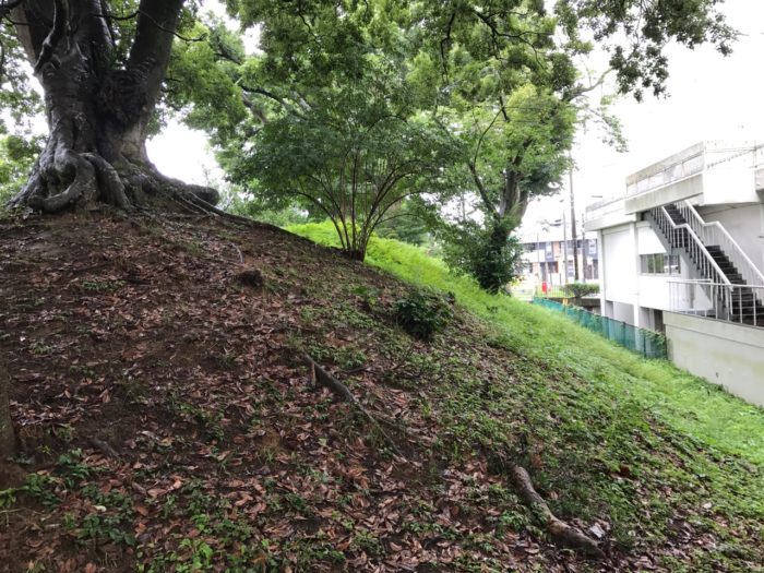 危うく見落とす所だった土塁跡。学校敷地内にあるからね。不審者扱いされないかドキドキするよね(笑)