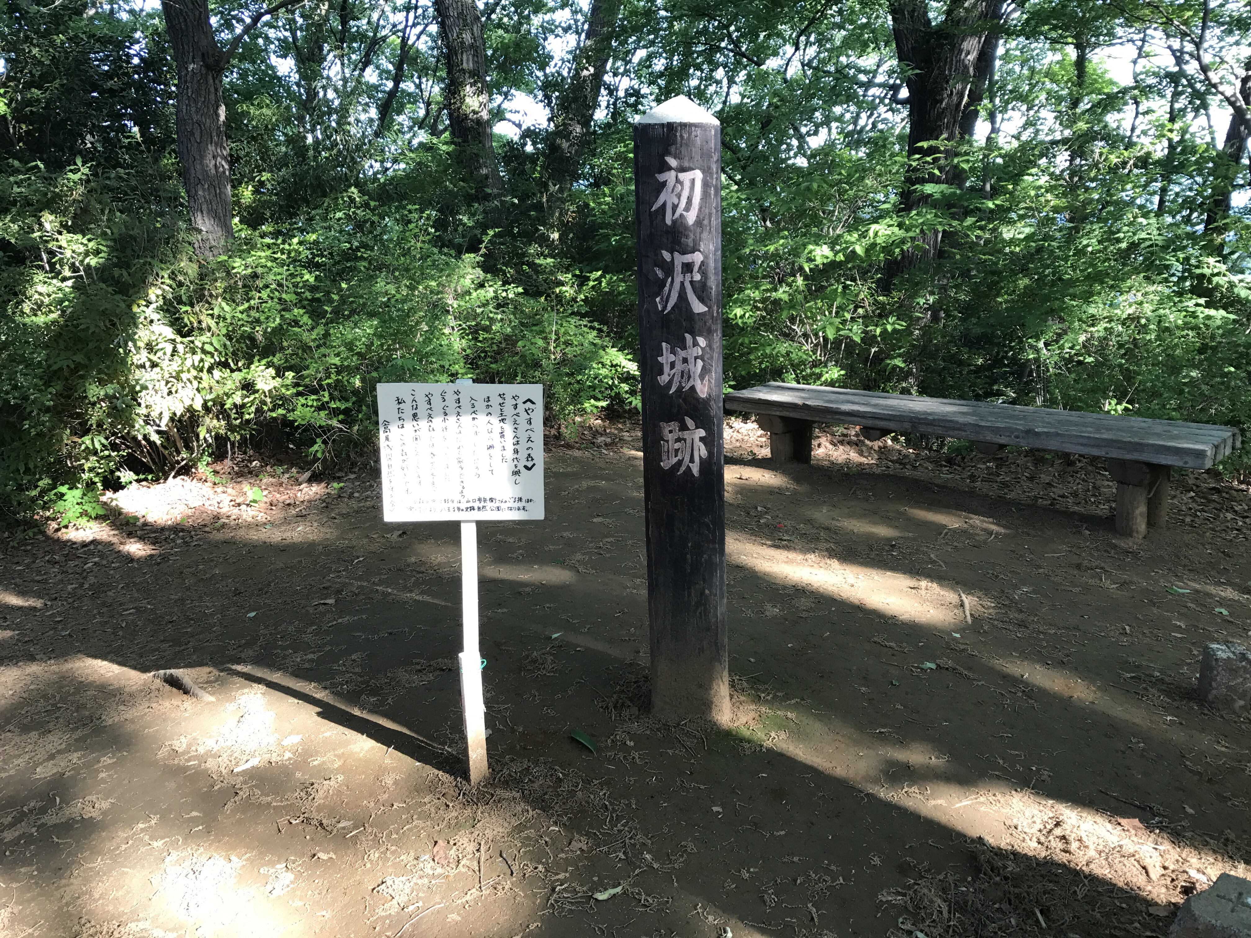鎌倉時代に片倉城に在城していた高乗寺開祖の長井氏によって築城されたとも伝わるが、諸説ある。「新編武蔵風土記稿」によれば、鎌倉幕 府初期の御家人で武蔵七党の横山党の一族・椚田氏の居城と推測されている。長井氏は鎌倉幕府初期の重臣・大江広元を祖先に持ち、横山党 が1213年(建暦3年)和田合戦で滅亡すると、同地は大江氏に与えられた。長井氏は扇谷上杉氏の傘下となる。1504年(永正元年)、扇谷 上杉軍が山内上杉軍を破った立河原の戦いの際、落城した扇谷上杉方の椚田塁に比定される。後北条時代、八王子城の出城の一つとされ、 1590年(天正18年)の豊臣秀吉による八王子城攻め、落城とともに初沢城も落城、廃城となった。