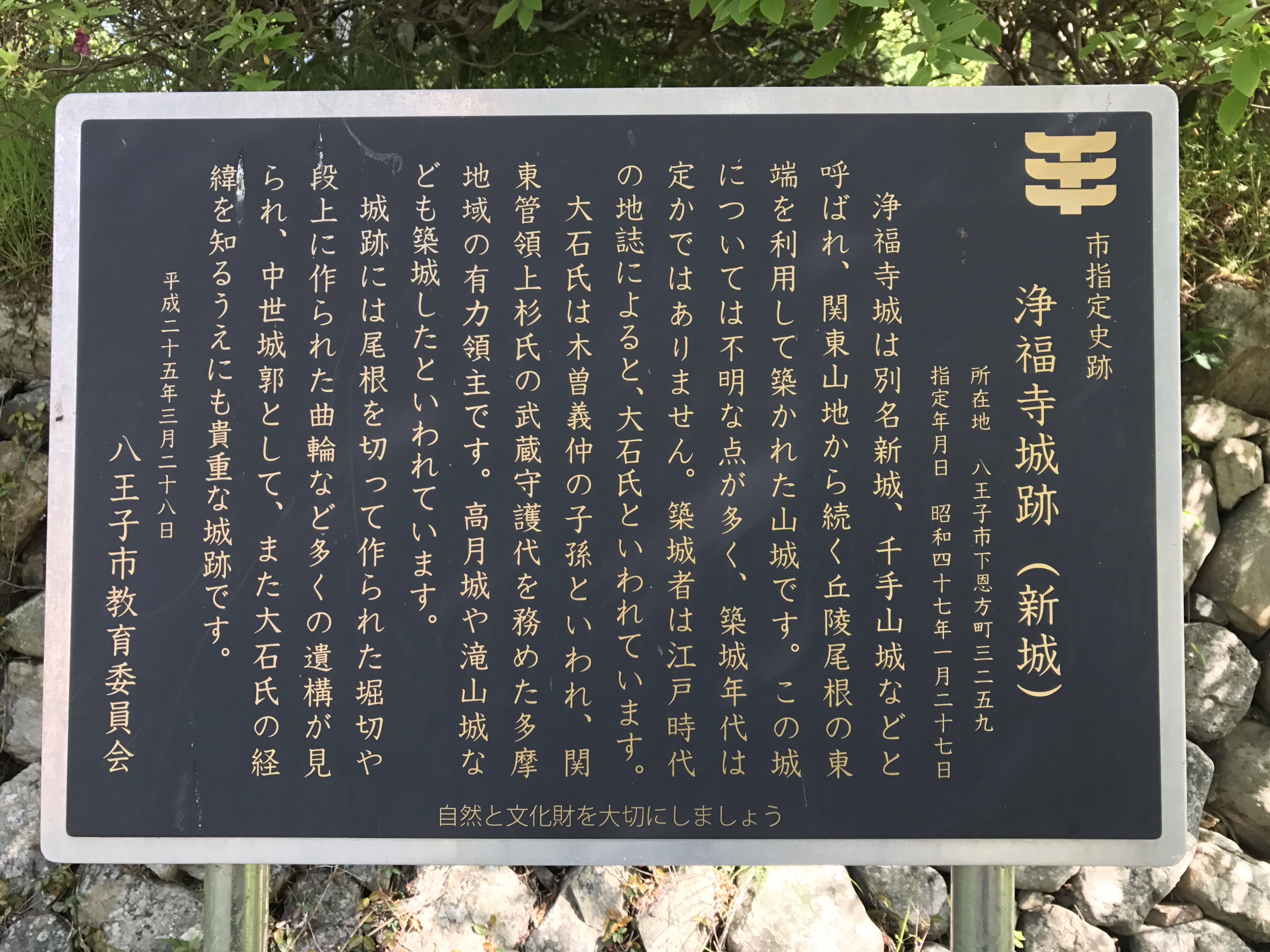浄福寺城は、諸説があり築城年代や築城者については定かでないが、至徳元年に大石信重によって築かれたと云われている。