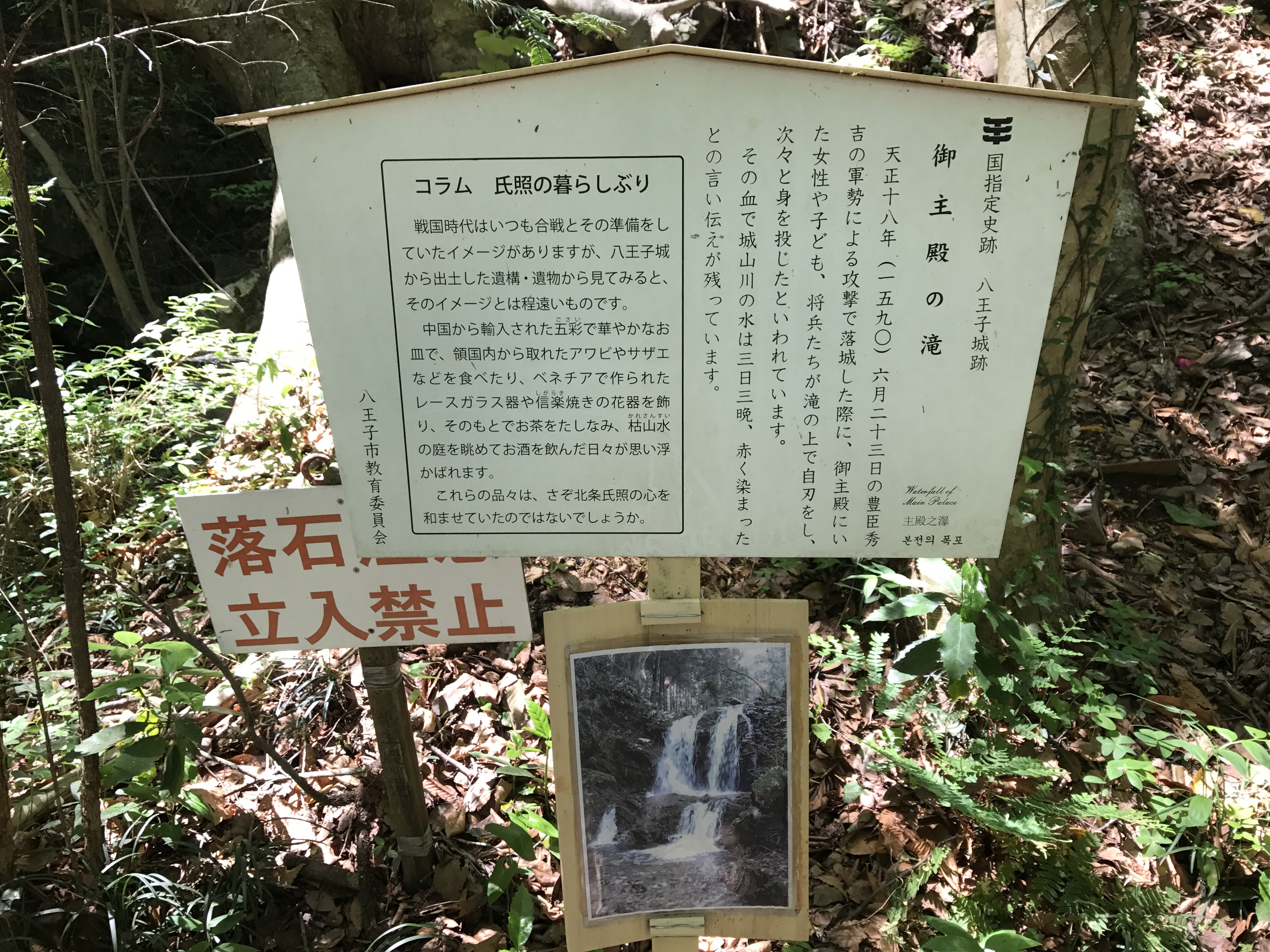 そして、落城時に北条方の武将や婦女子らが滝の上で自刃して、身投げして、その血で三日三晩赤く染まったとされる御主殿の滝。言わずと知れた心霊スポットです。