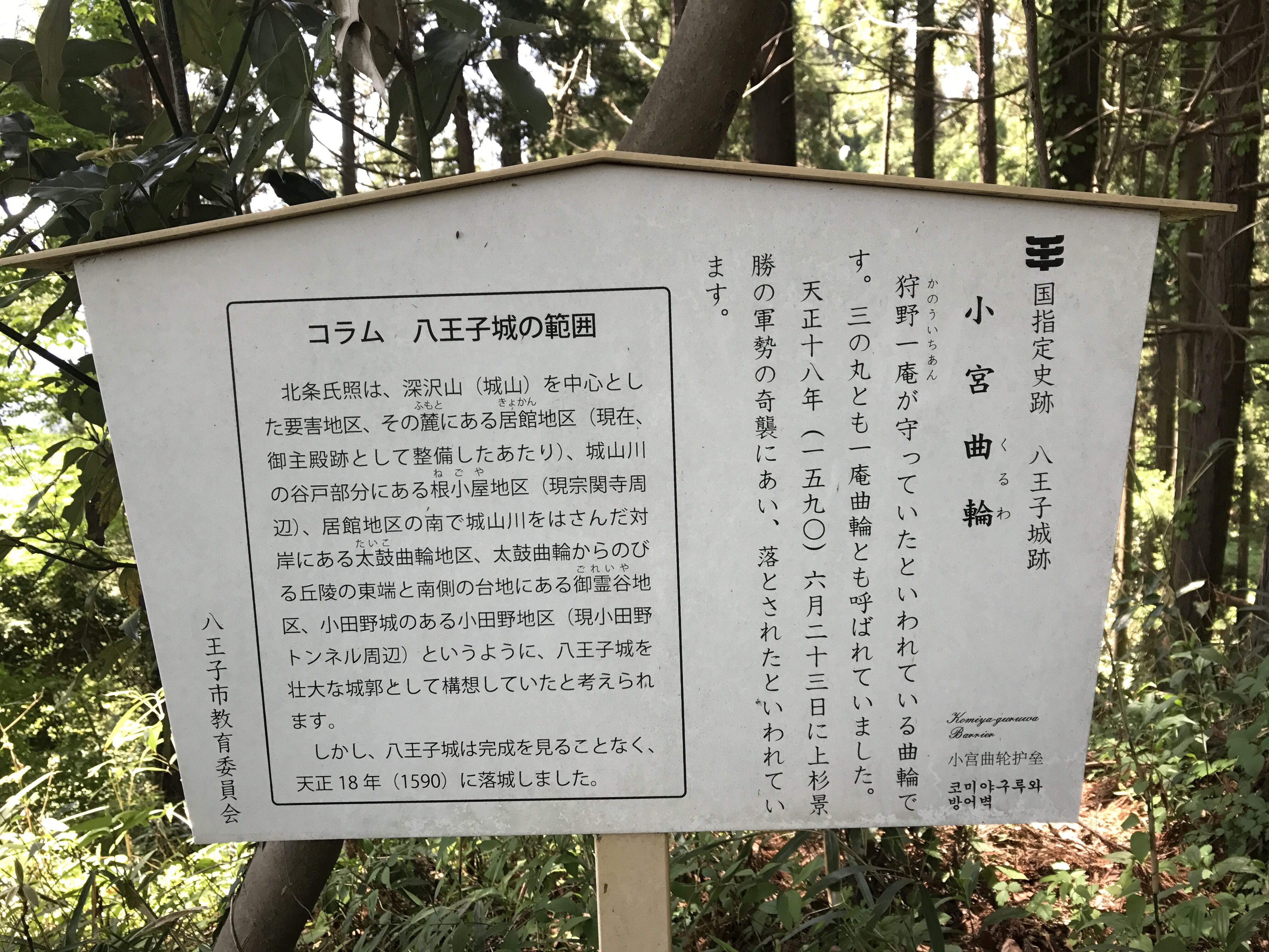 この八王子城攻防戦を含む小田原征伐において北条氏は敗北し、城主の北条氏照は兄、氏政とともに切腹した。のちに新領主となった徳川家康によって八王子城は廃城となった。