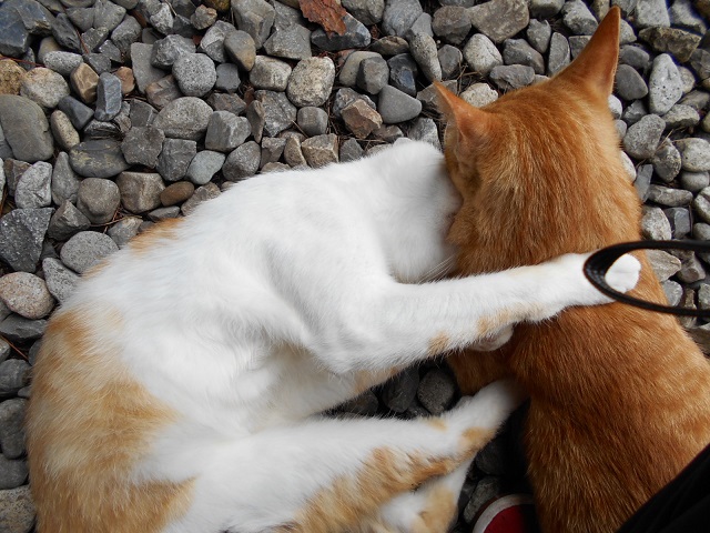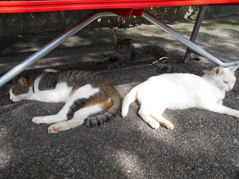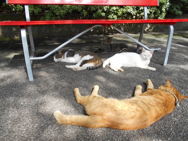 ここにも大量の猫たち。そして、また同じ格好で昼寝。