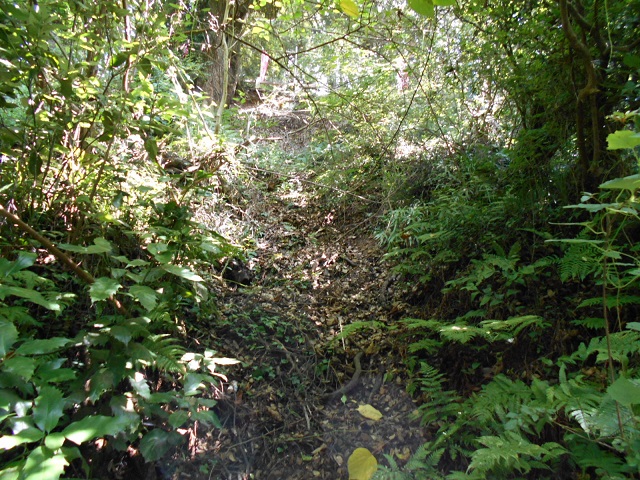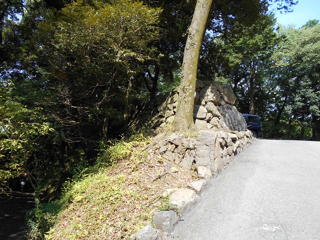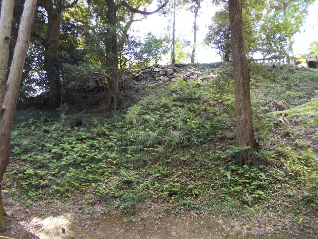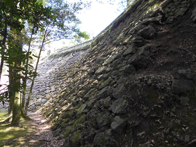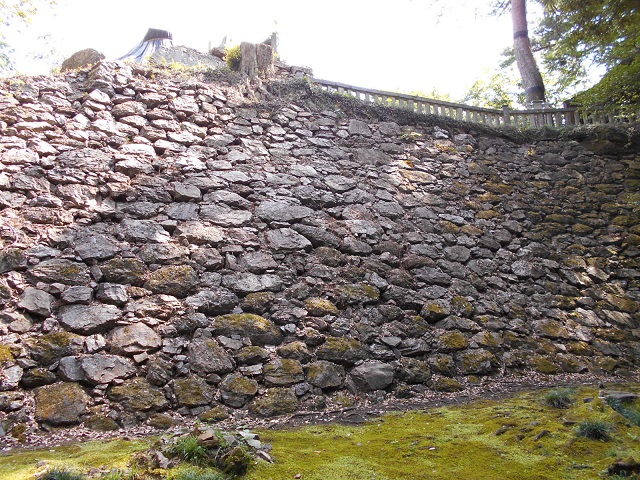 本丸土塁。石垣が崩れたのだろうか。それとも、土塁だったのだろうか。高い。