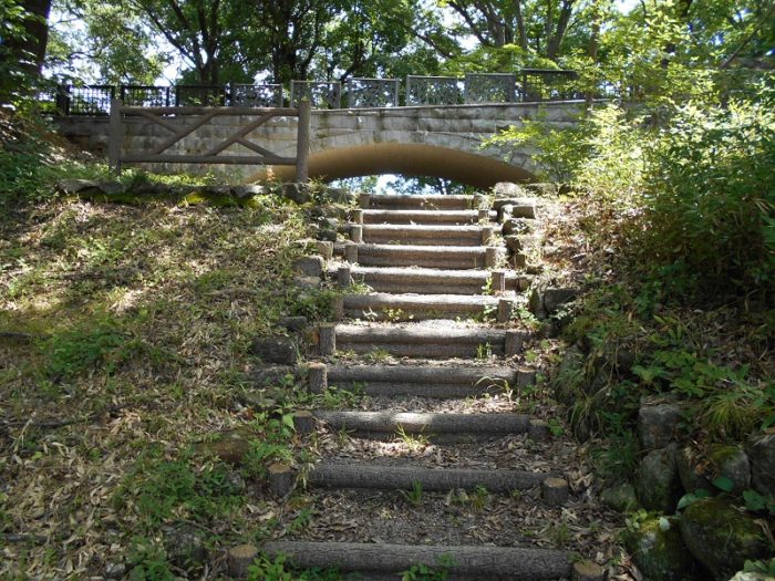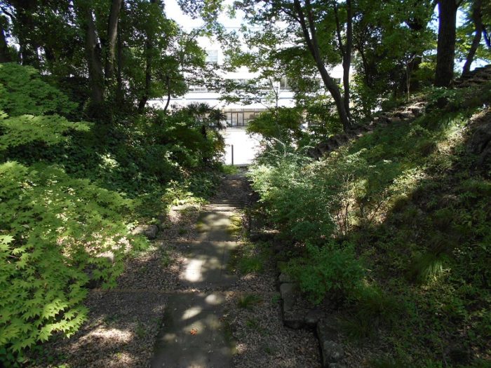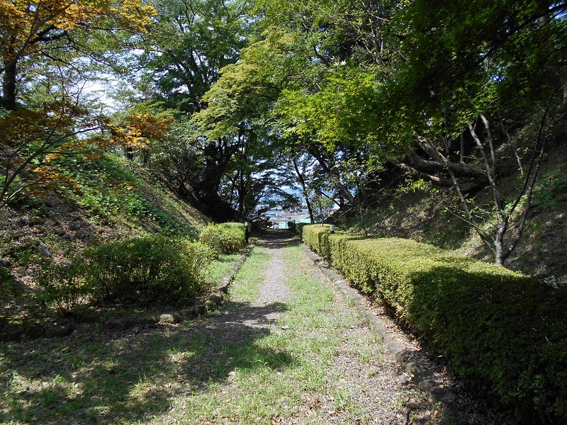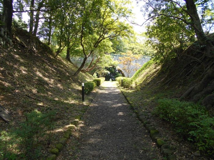 二の丸と本丸の橋。土塁。高い事が解る。
