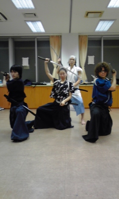 終了後、イベントの殺陣稽古に遅れて合流。殺陣指導のはしごである。鏡を見ると、疲れで目が仲代達矢の如きくぼみ方になってる。おもわず仲代のナレーションのものまねを一人でしてみる。