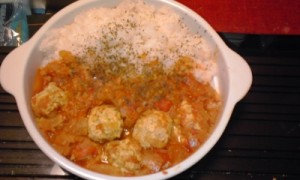 夜、カレー屋トラ。鶏肉の肉団子カレー。ヘルシー。肉団子にもガラムマサラとかチリペッパーとか入れて。うんめぇぇ!