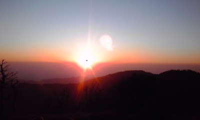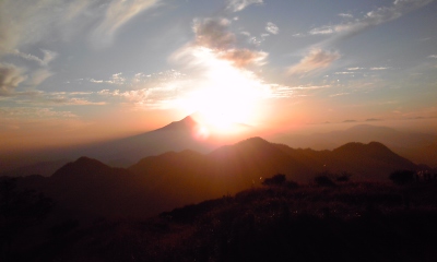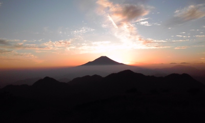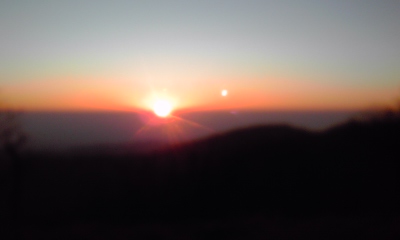 翌日、ご来光を見る為、5時半に起床。さ、寒い。とんでもなく寒い。ダウン来て外へ出る。