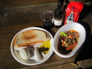 昼食タイム。見て下さい。普段でもこんなに豪華な昼食は食べません。ワインがぶがぶ飲んでしまいました。