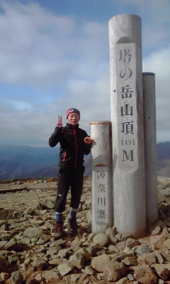 着いた。塔ノ岳。前回より15分速いタイムで着く。成長してるのかな。