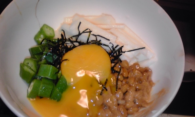 副食に納豆。オクラ。長いも。卵。ねばねば四兄弟。栄養バツグン。酒のアテにもなります。