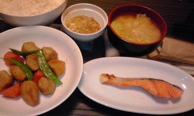 COOKING 朝食か@「語感でアイロニー」#826 Posted on 2012/03/03 by kotaro / 0件のコメント ああ。山登りてぇ。天気が上手い事いきませんね。 定食屋トラ。焼鮭定食。 煮物が無性に食べてくなり作りました。里芋だけ煮ようと思ったのですが、人参も余っており投入。 納豆付けてみそ汁作って。 旅館の朝食かっ! てか、 地味! でも。旨いんだよねぇ。落ち着くんだよねぇ。煮物。 kotaro kotaro の投稿をすべて表示