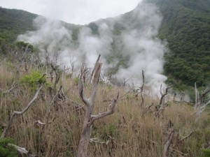 硫黄で木がこんな感じ。地獄谷のようですな。地獄知らないし行った事ないけど。