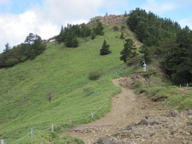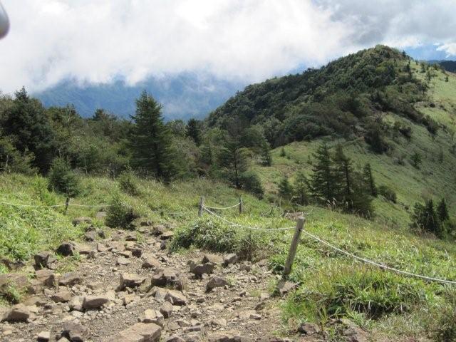 頂上目指しえっさっさ。急に下りになり嫌な予感がしたので、少し前に昼食をしていたお兄さんの所へ戻り